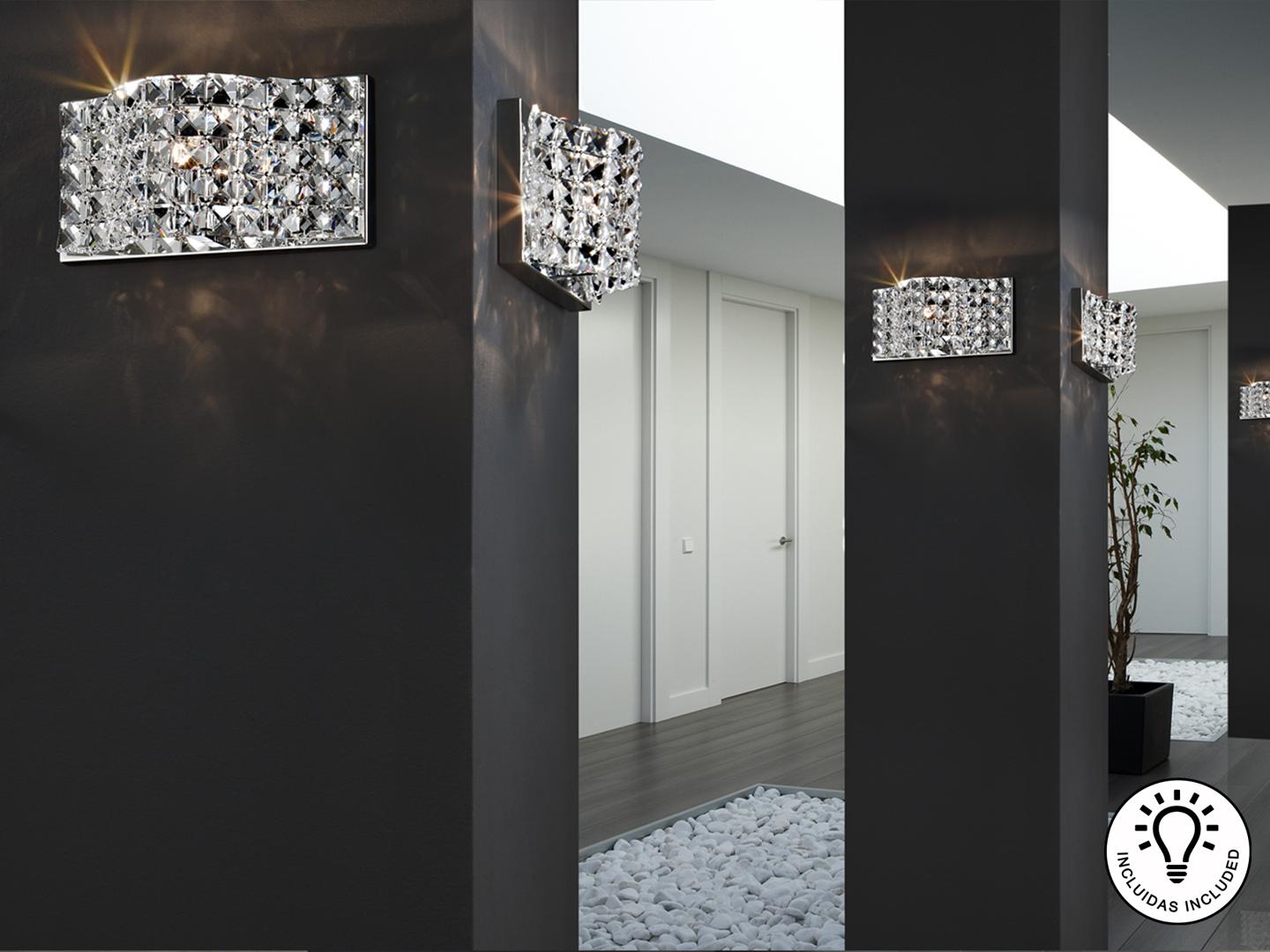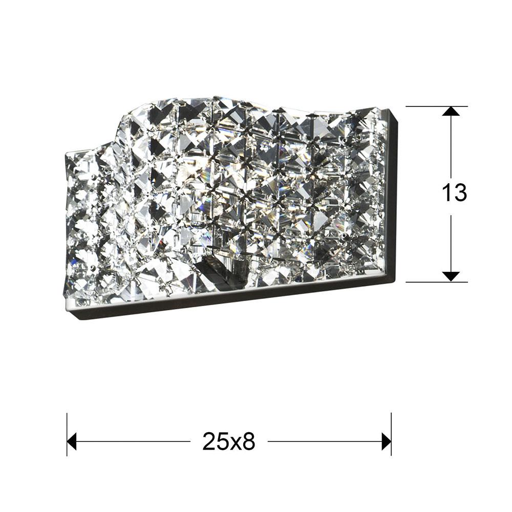 Бра из хромированного металла, плафон из скреплённых между собой кристаллов гранёного стекла K9. Включает 1 светодиод G9 6 Вт.