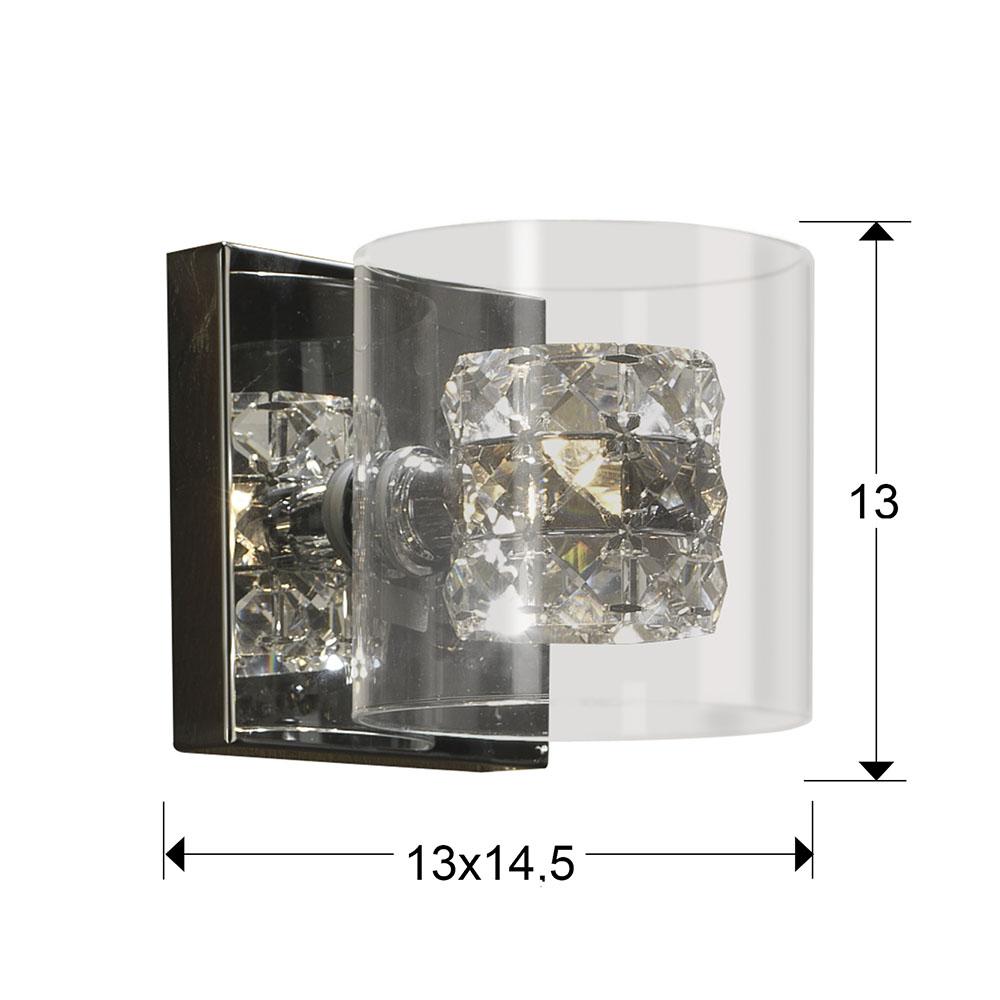Бра из металла с 1 лампой, с покрытием "блестящий хром", двойной плафон: внешний - из прессованного стекла и внутренний - из кристаллов из прозрачного и дымчатого гранёного стекла, Включает 1 светодиод G9 6 Вт.