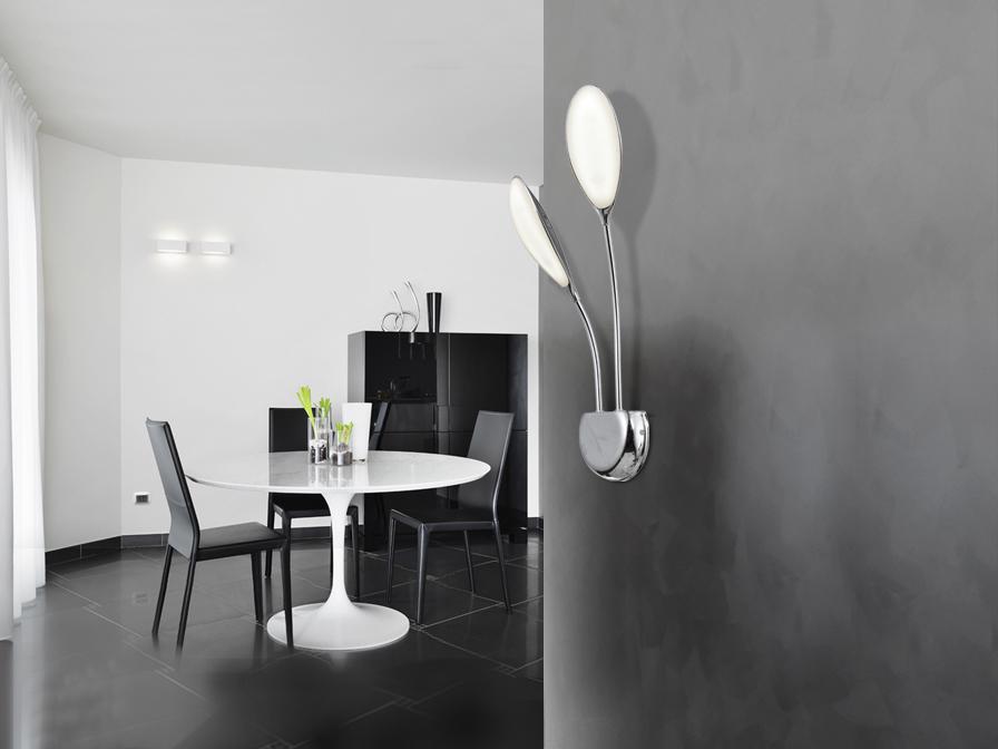 Настенный светодиодный светильник из алюминия и хромированного металла, опаловый рассеиватель из поликарбоната, 2 лампы LED 5,3W, 742 Lm 4000 K.