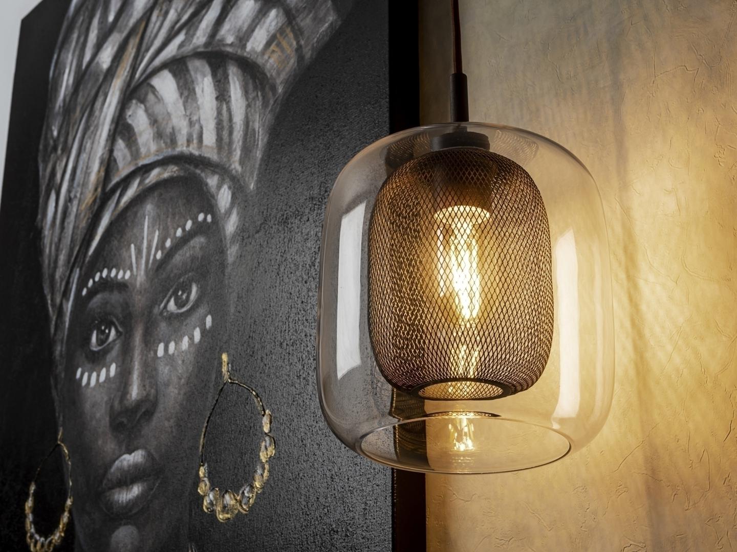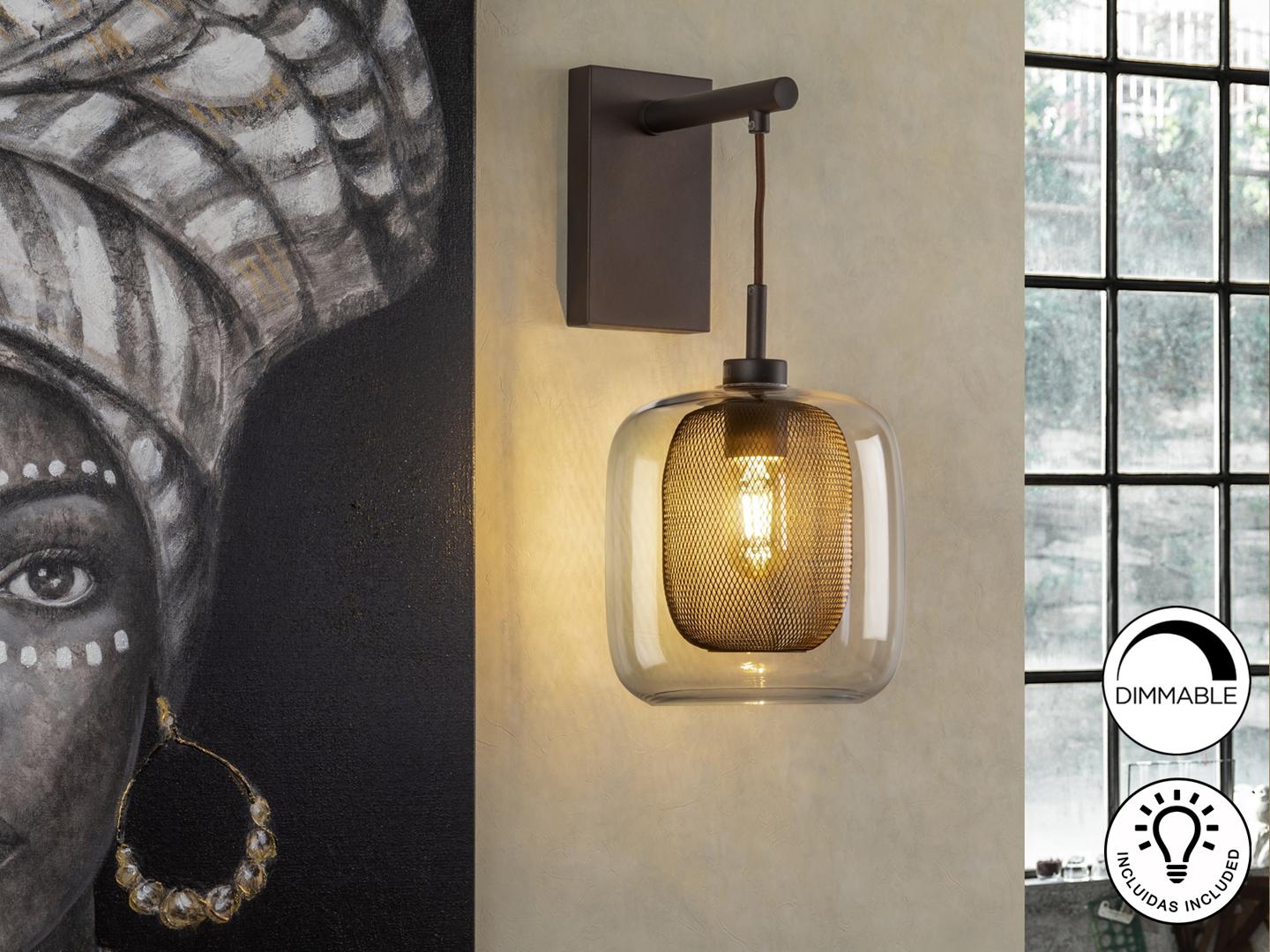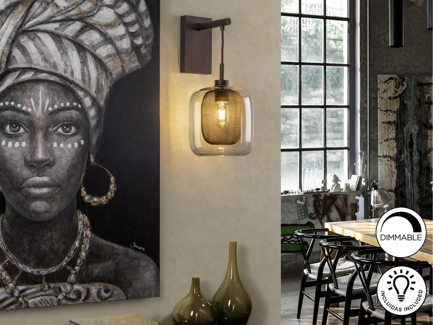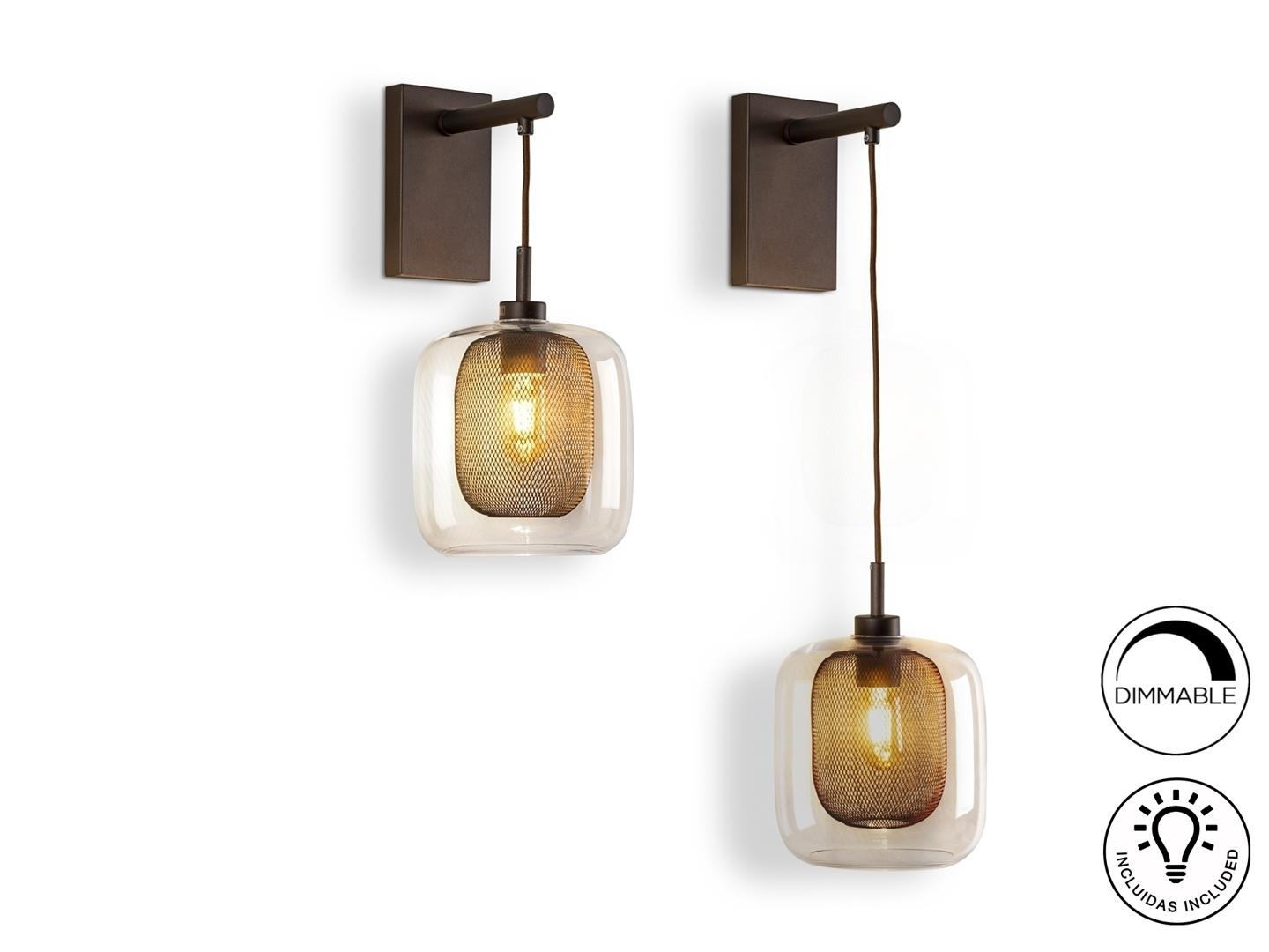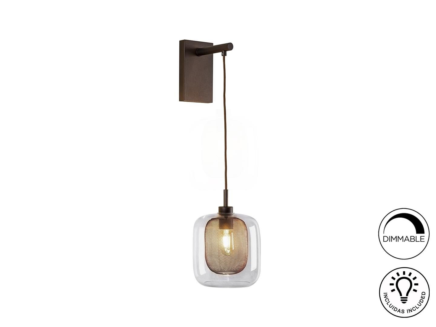 Настенный светильник из лакированного металла шоколадного цвета. Двойной стеклянный плафон, внутри металлической сетки и снаружи стекла. В комплект входит 1 светодиод E27 мощностью 8 Вт. DIMABLE.