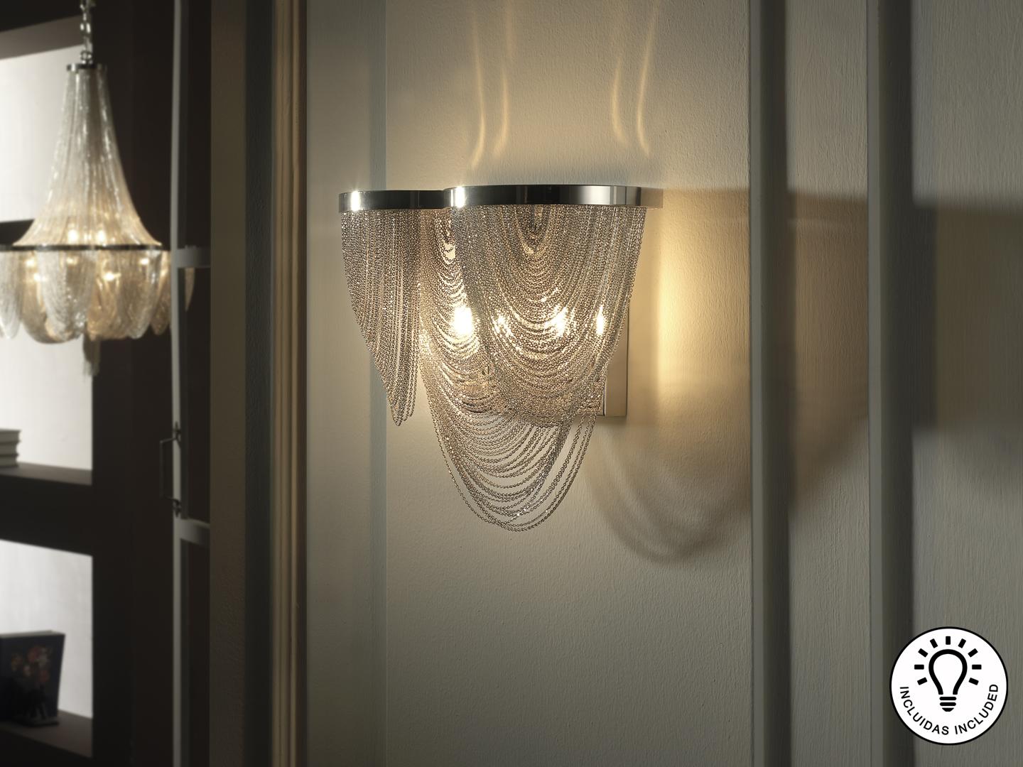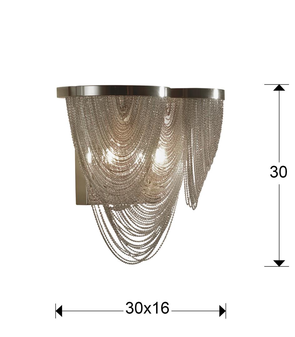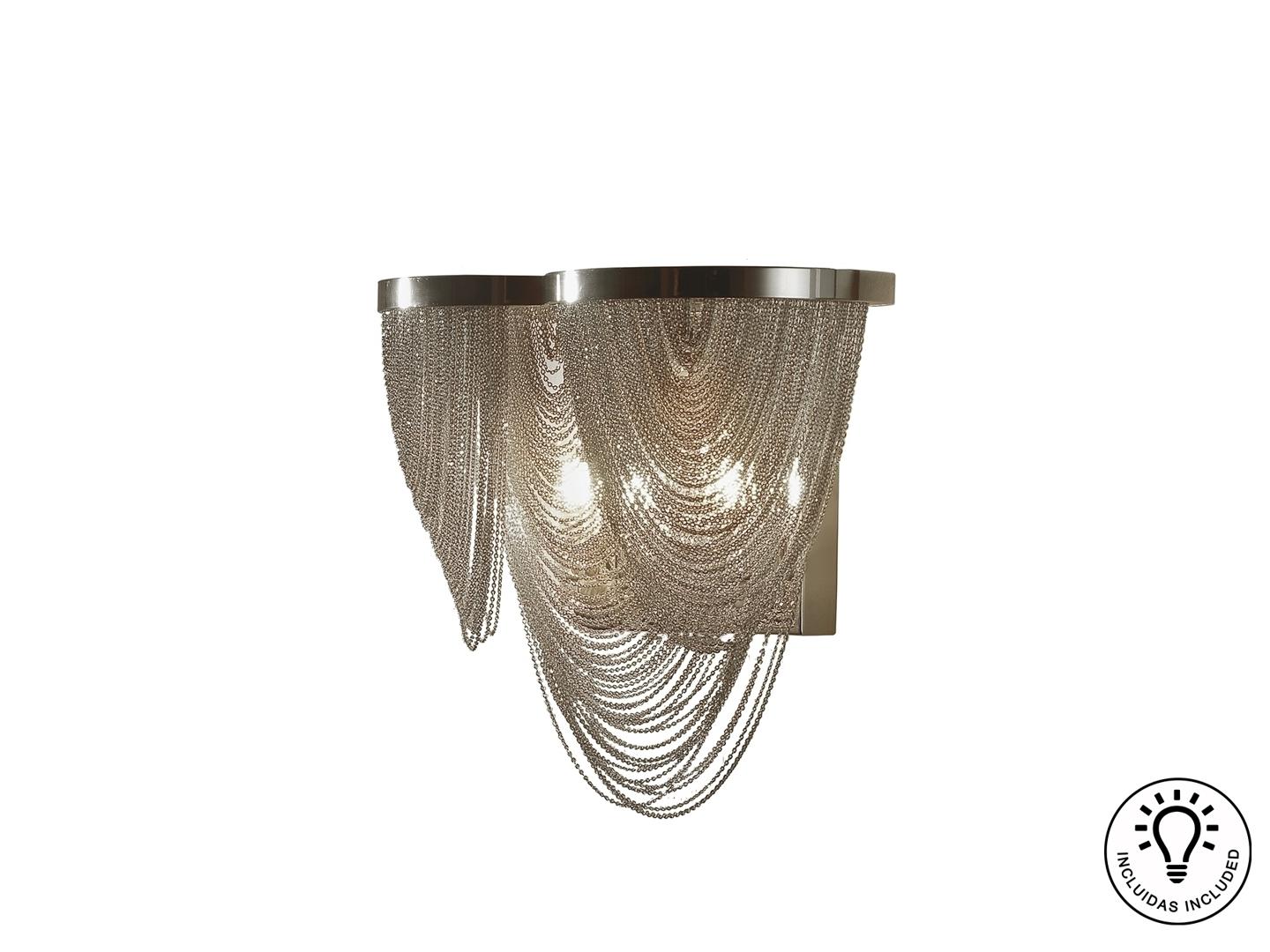 Бра, образованное тонкими декоративными цепями из металла с покрытием "никель", Включает 2 светодиода G9 мощностью 6 Вт.