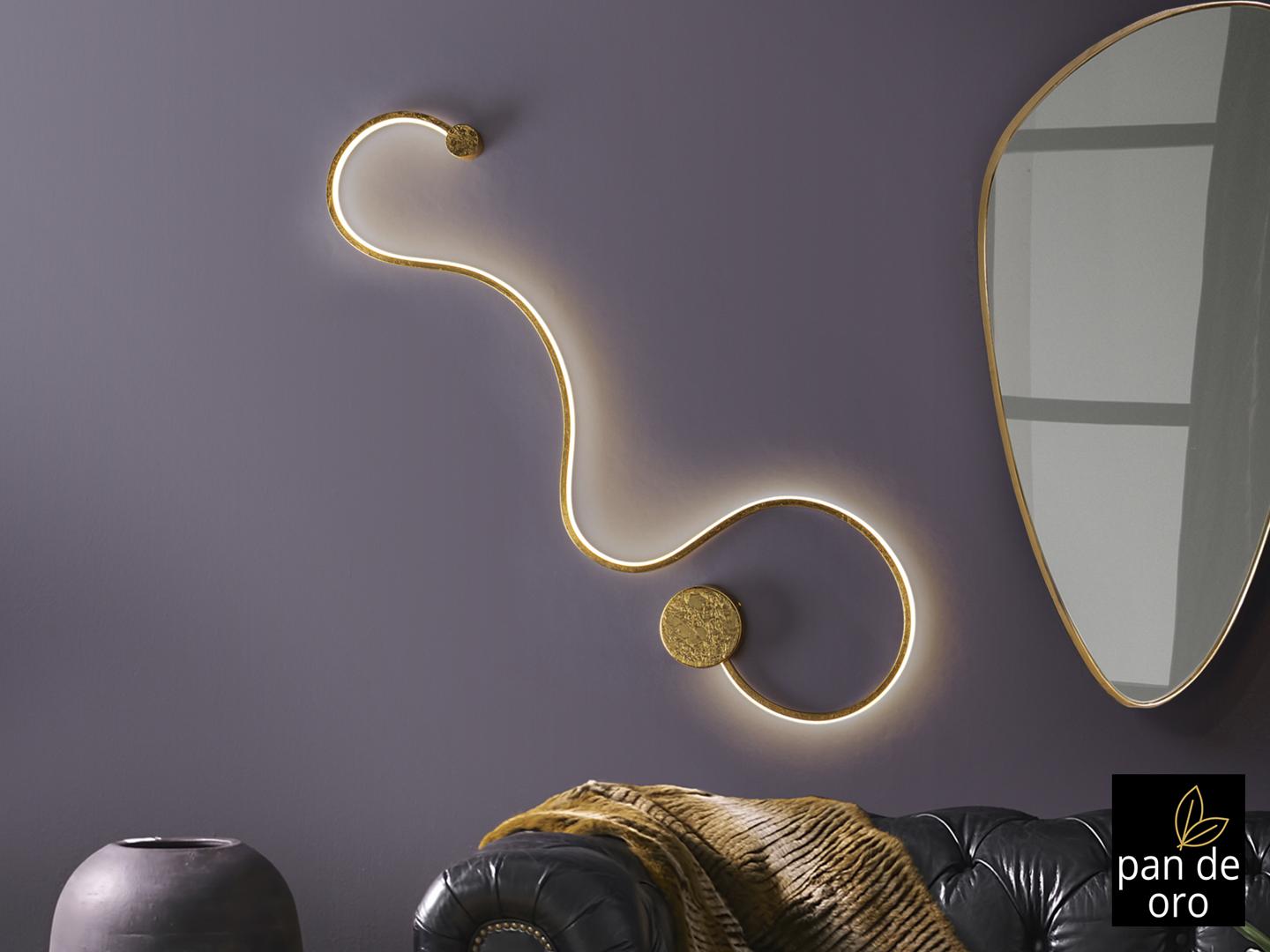 Настенный светильник из стали и алюминия с покрытием из золотой фольги. Силиконовый рассеиватель опалового цвета. LED 19,5W, 900 Lm, 3000 K.