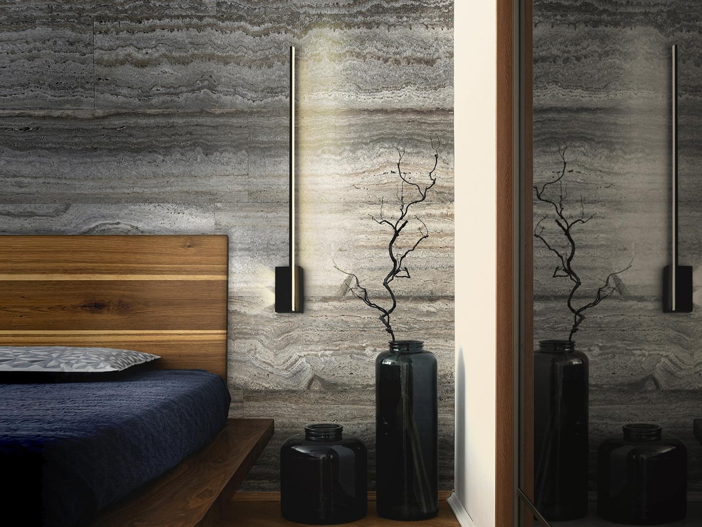 Настенный светильник из алюминия и металла, матово-черное покрытие. Кронштейн со светодиодной подсветкой и рассеивателем из опалового силикона, а также два боковых светодиодных точечных светильника, 17 Вт LED, 1400 лм, 3000 К.