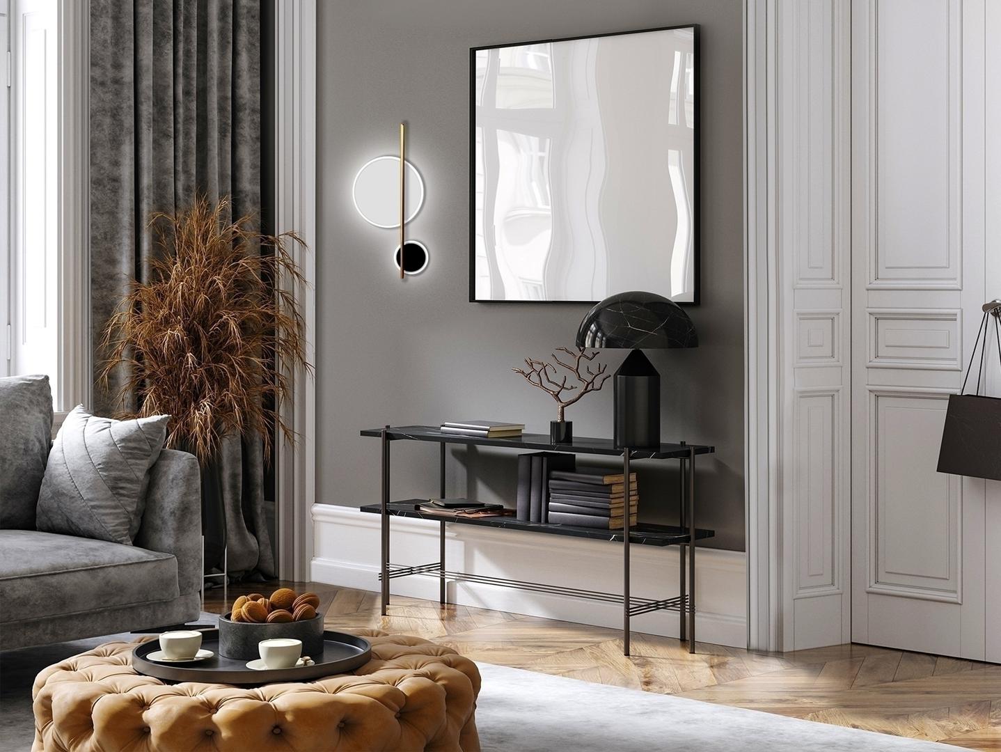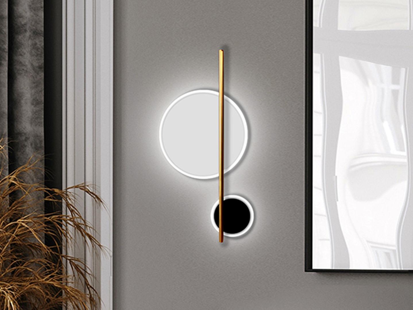 Настенный светильник из алюминия и металла; матово-черная, матово-белая и золотистая отделка. Сферы с опаловым акриловым рассеивателем. Светодиод 10 Вт, 1100 лм. 3000 К.