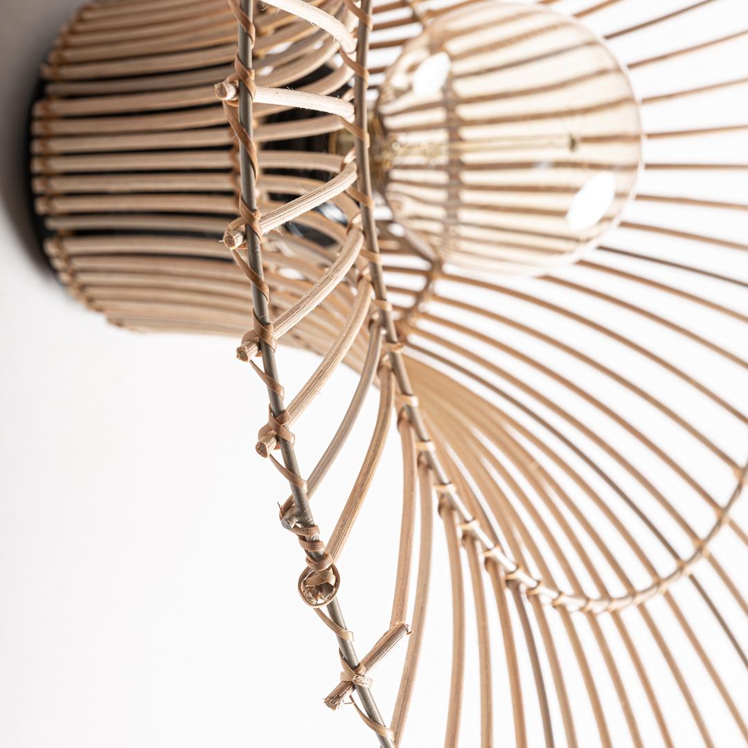 Настенный светильник в стиле ар-деко. Изготовлен из железа золотого цвета в сочетании с ротангом светло-коричневого цвета.