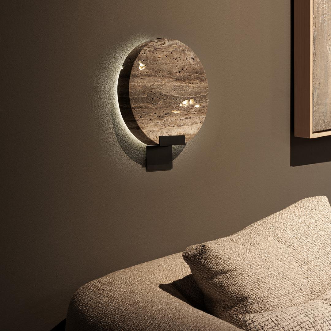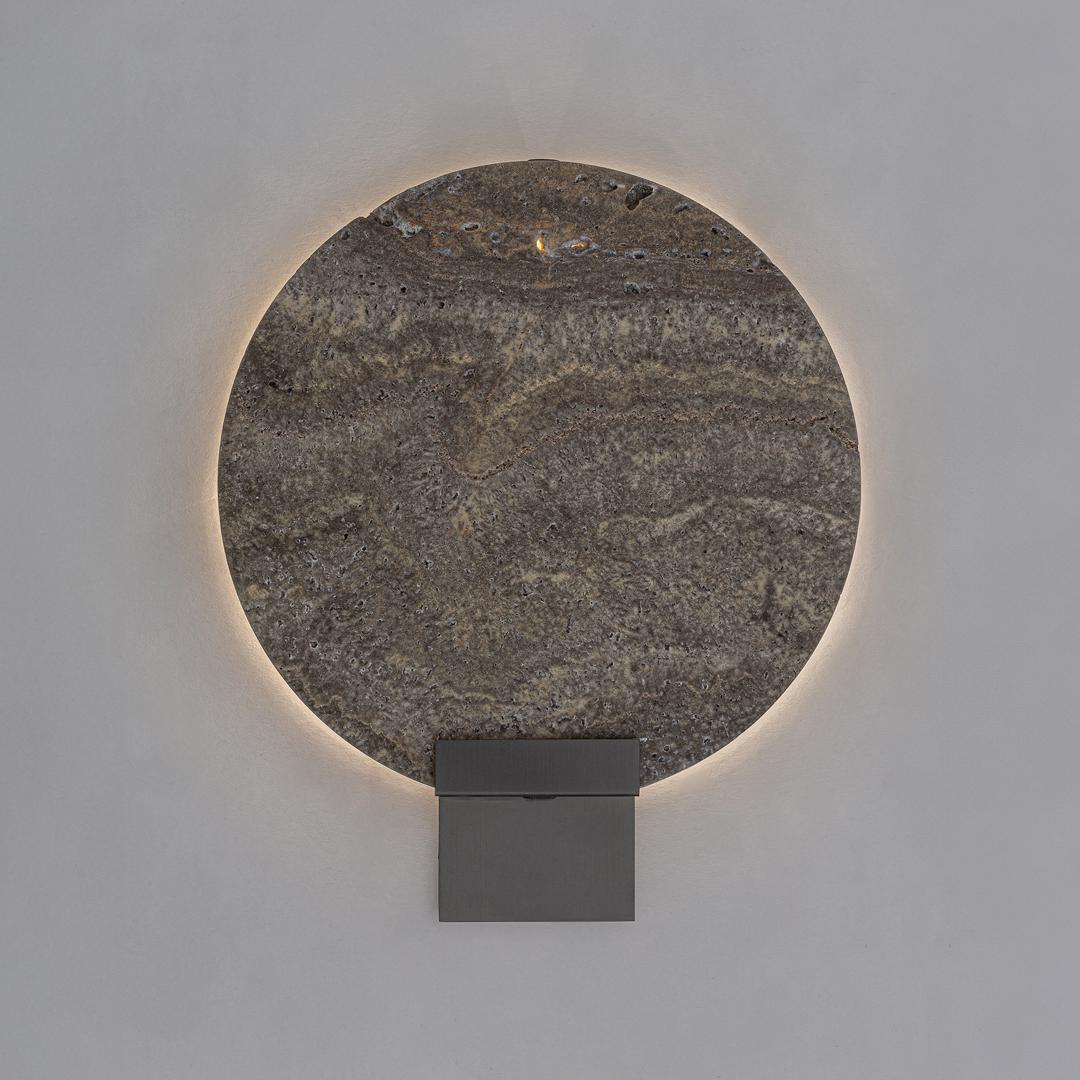 Настенный светильник в стиле ар-деко, выполненный из серого мрамора в сочетании с серой сталью. Ширина: 22 см, Глубина: 4 см, Высота: 27 см