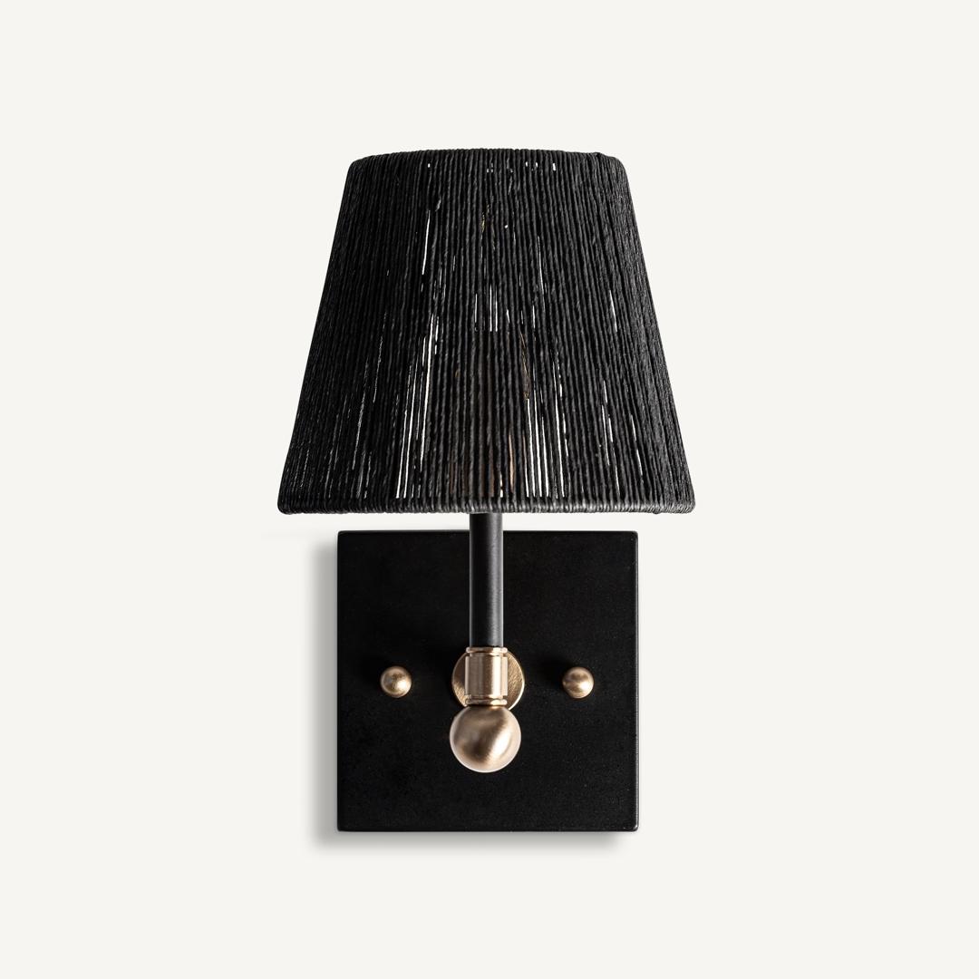 Настенный светильник Gael, стиль арт-деко. Изготовлен из железа, черного цвета, в сочетании с веревкой, золотого цвета. Съемное изделие.