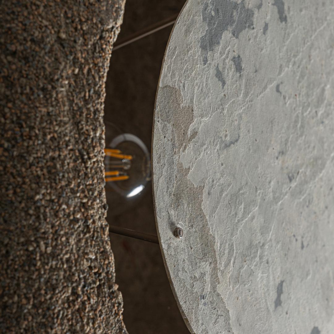 Настенный светильник из серого цемента в сочетании с серым папье-маше и бежевым камнем. Ширина: 62 см, Глубина: 23 см, Высота: 62 см