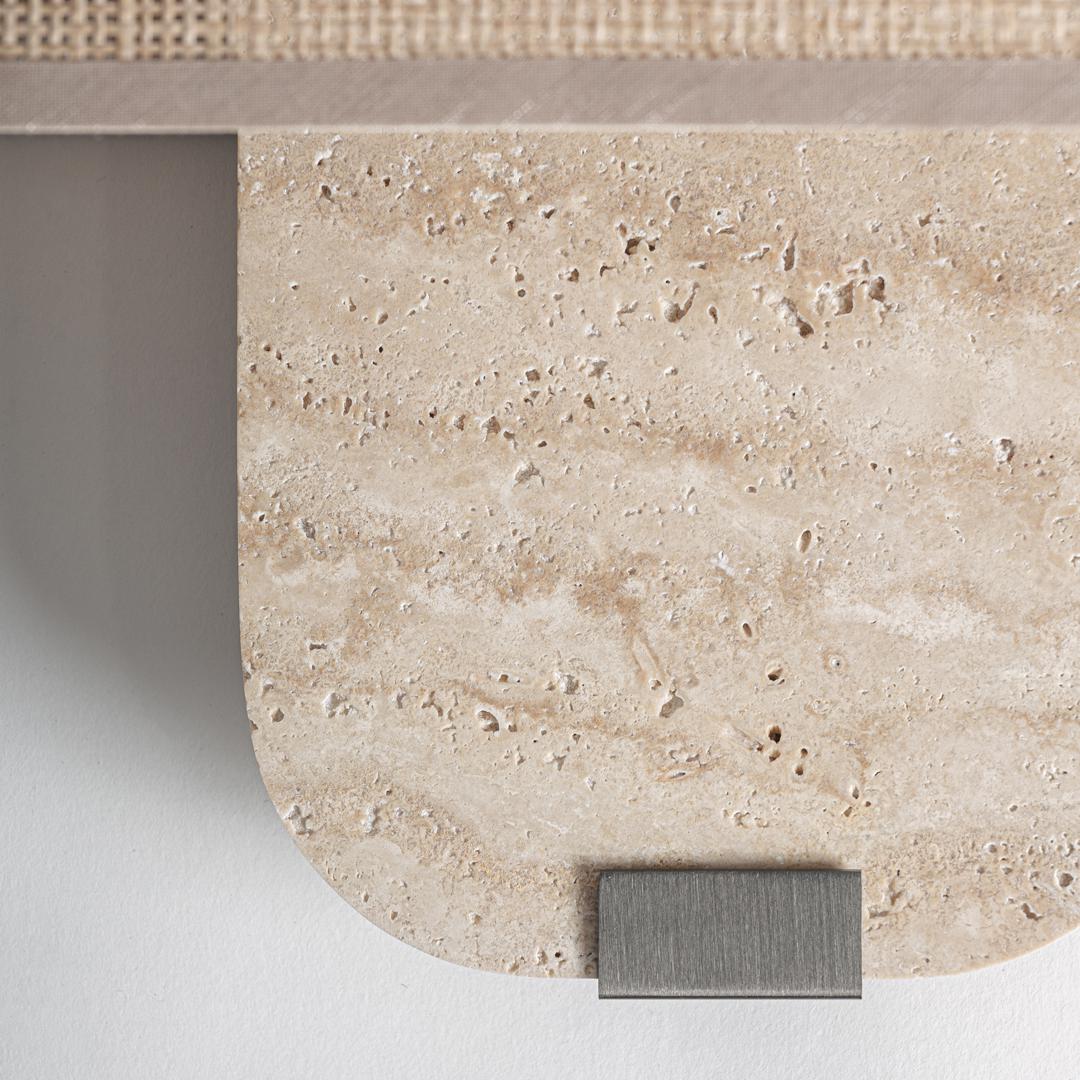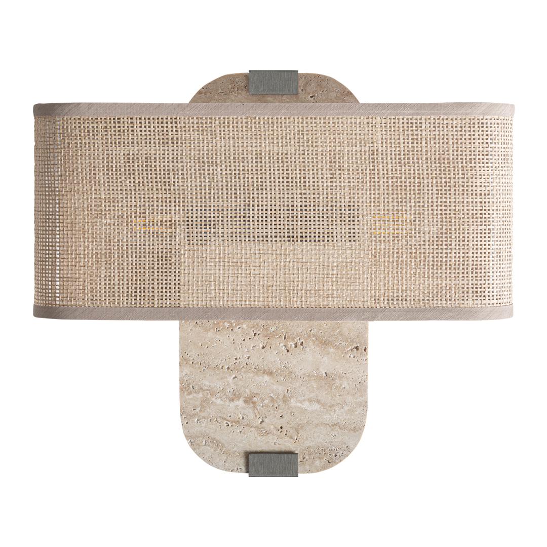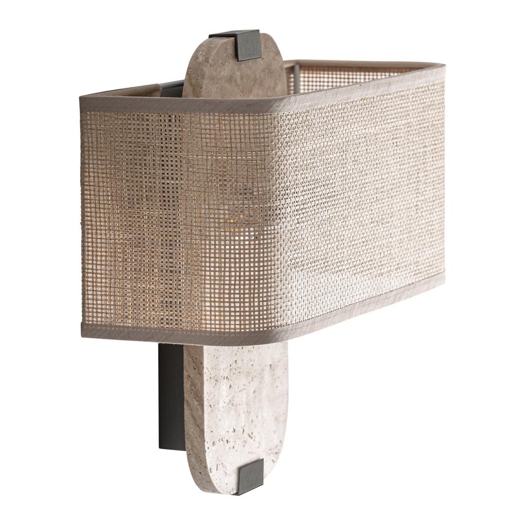 Современный настенный светильник Kora, выполненный из бежевого мрамора в сочетании с черным железом и бежевым полиэстером. Изделие разборное. Ширина: 37 см, Глубина: 13 см, Высота: 32 см