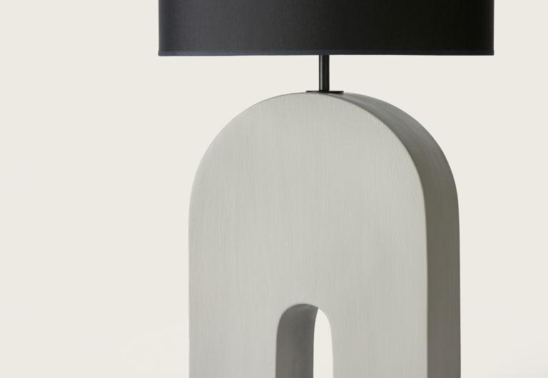 Дизайнерское основание настольной лампы со стальной конструкцией в золотом, хромированном, черном или белом исполнении и керамическим скульптурным основанием в цвете, который вы выбираете из представленной палитры.