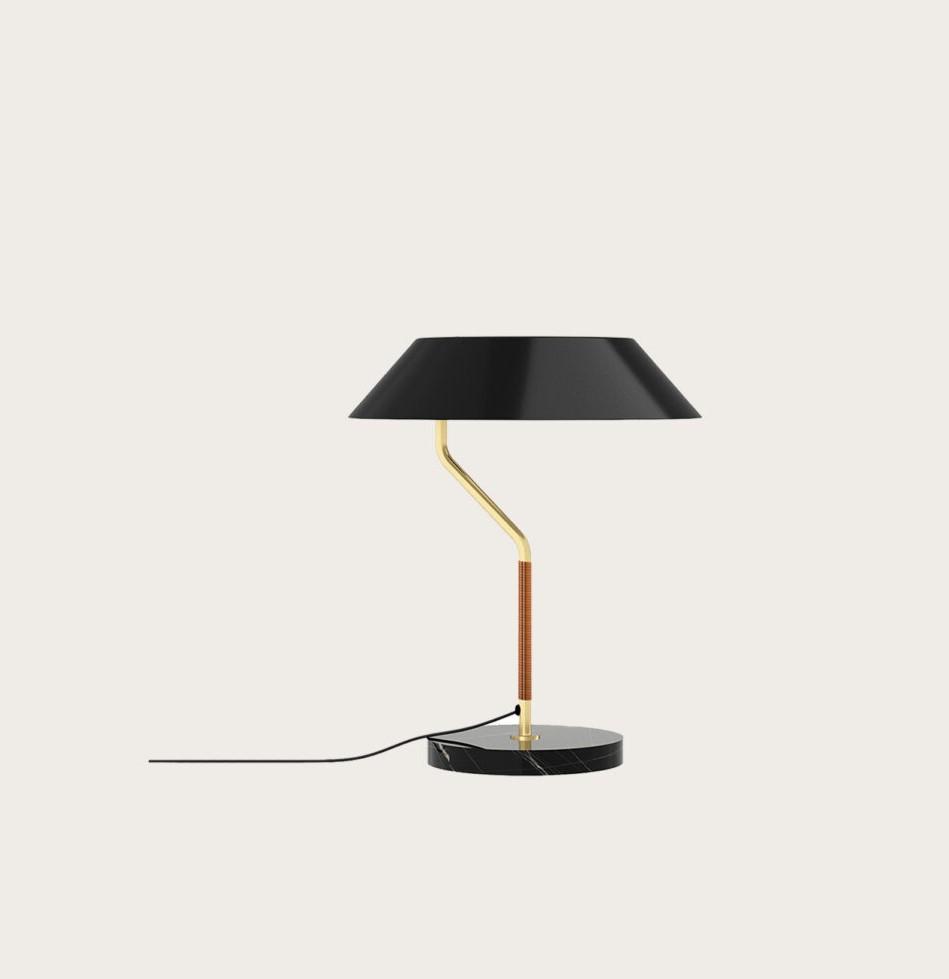 Настольная лампа Aider от испанского бренда Aromas del campo - сочетание интересных форм и материалов. Основание выполнено из черного мрамора, ножка - матовая латунь и ротанг, абажур лаконичный черный. Данная настольная лампа станет отличным дополнением вашего интерьера.