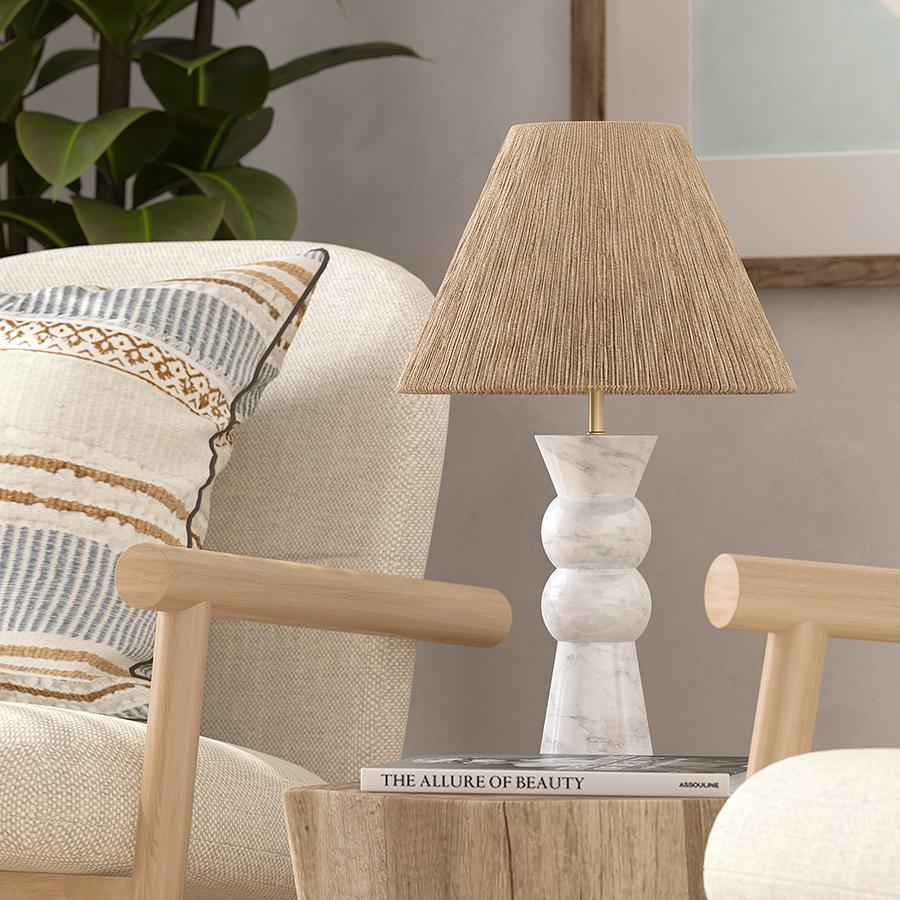 В настольном светильнике Agot удачно сочетаются элегантная простота и благородство, стиль и функциональность. Такая настольная лампа поможет в создании уютного пространства с уникальным дизайном. Особенности и преимущества: - Основание из натурального мрамора – устойчивого к повреждениям и неприхотливого в уходе природного материала. - Необычный абажур из высокопрочного сизалевого волокна, обеспечивающий комфортное освещение. - Распространенный тип цоколя Е27, который подходит для большинства ламп, включая энергосберегающие источники света. Материал: мрамор, сизаль. Размеры: 30х6х52 см. Цвет: белый. Тип цоколя: Е27. Степень пылевлагозащиты: IP20. Максимальная мощность ламп: 25 Вт. Напряжение: 220-240 В. Длина провода: 2,5 м. Переключатель: встроенный. Площадь освещения: 1,7 кв.м. Лампы в комплекте: нет. Для удаления пыли и загрязнений используйте сухую или слегка влажную мягкую ткань. Запрещается применение абразивных материалов и агрессивной бытовой химии. Перед очищением убедитесь, что светильник не подключен к сети. Осветительный прибор со степенью пылевлагозащиты IP20 можно устанавливать только в сухих помещениях, где отсутствует вероятность попадания на корпус брызг воды и исключается любое механическое воздействие.