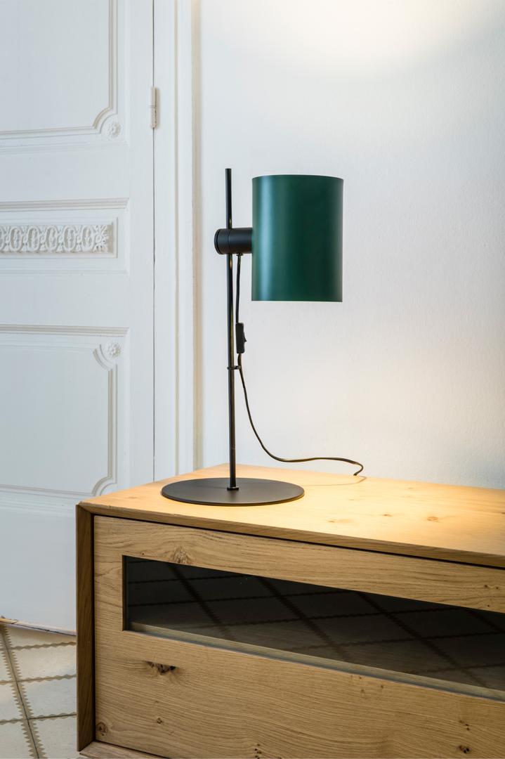 Настольная лампа с цилиндрическим плафоном в зеленом цвете, разработанная Faro Lab. Уникальный дизайн, который придаст современный вид любому пространству. Позволяет направлять свет более устойчиво. Структура черного цвета.
