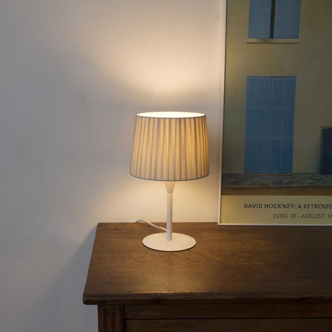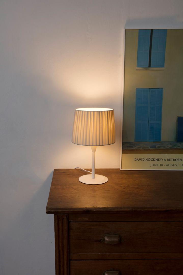 SAMBA - это коллекция для внутреннего освещения, разработанная Faro Lab. Эта белая миниатюрная настольная лампа с бежевым плафоном идеально подходит для спален и гостиных. Хороший вариант для отелей.