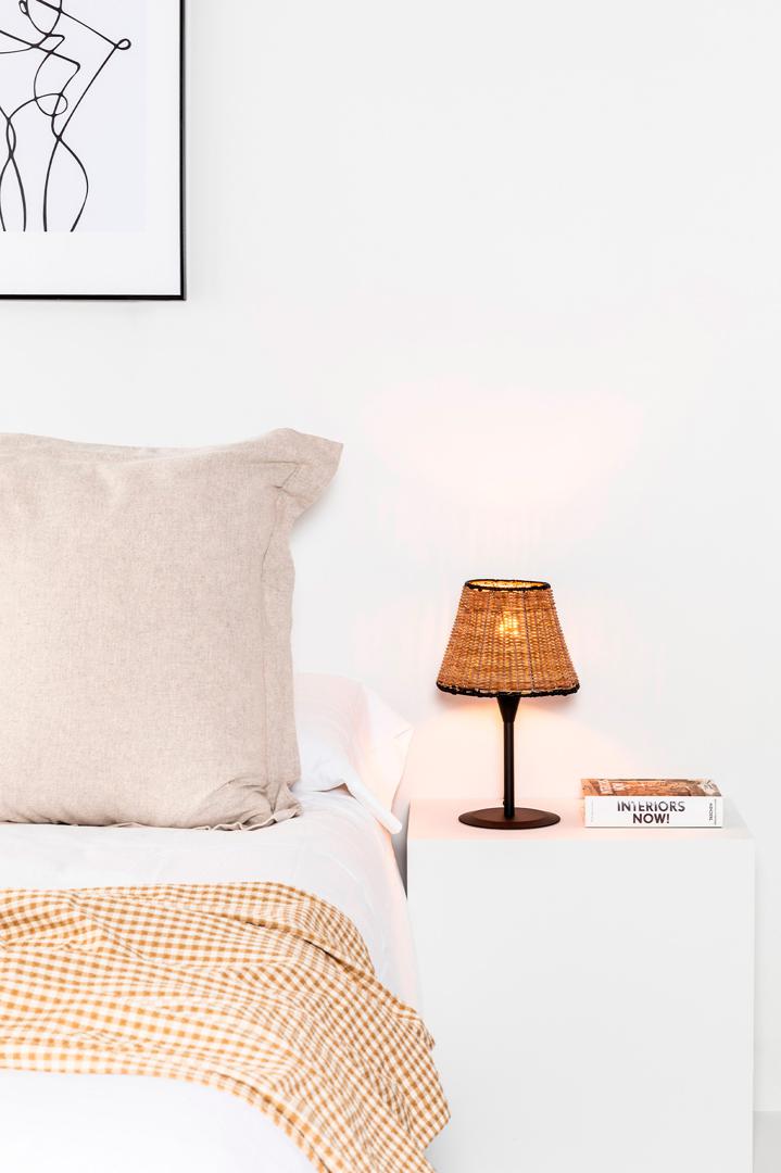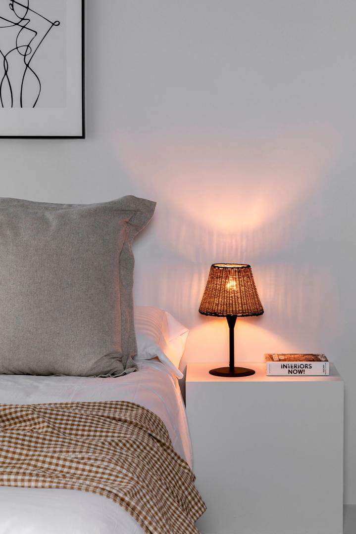 SUMBA S — это коллекция внутреннего освещения, разработанная Faro Lab, в которой ротанг играет ведущую роль. Эта настольная лампа с абажуром из ротанга связана для освещения спален и гостей. Это хороший выбор для гостиницы.