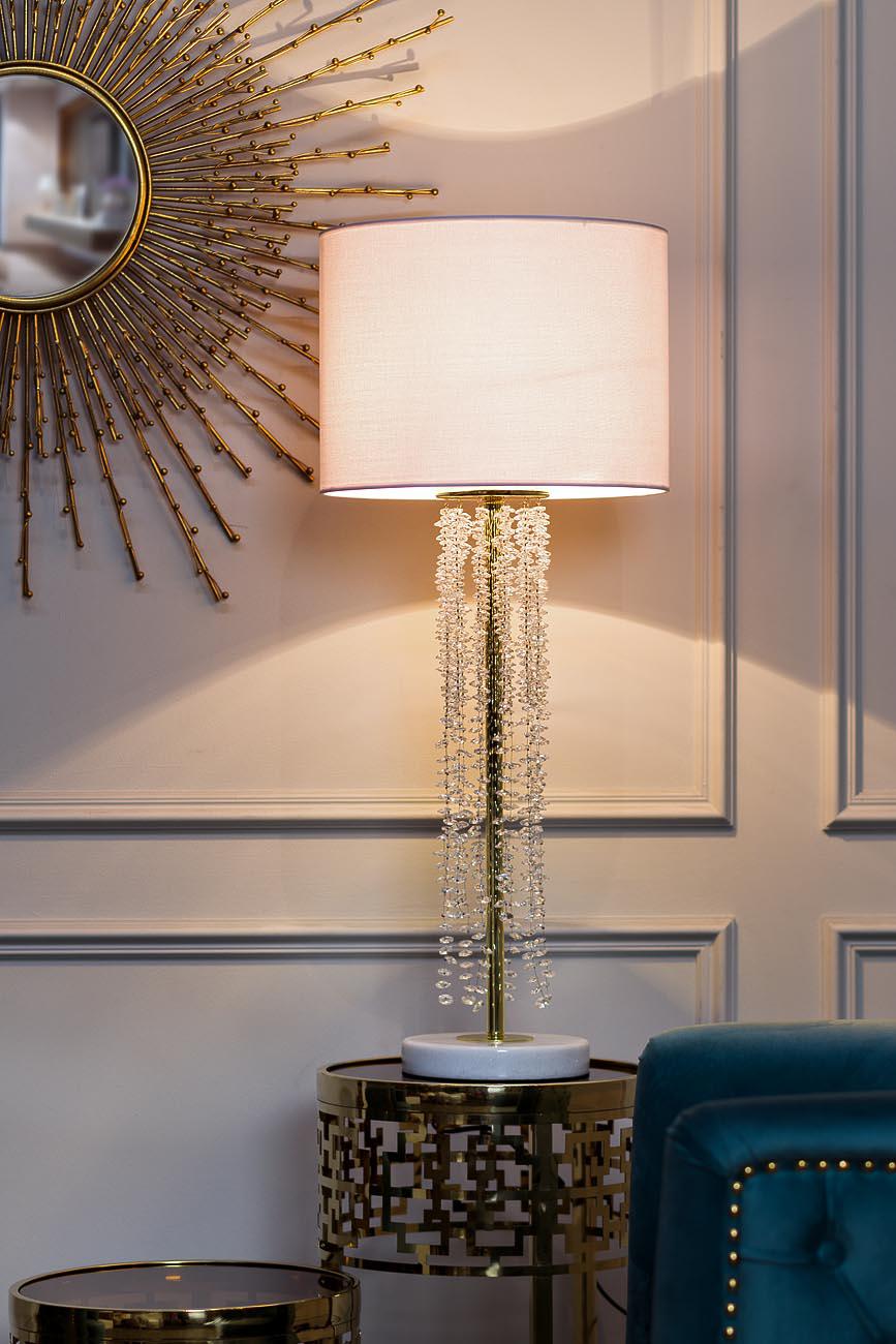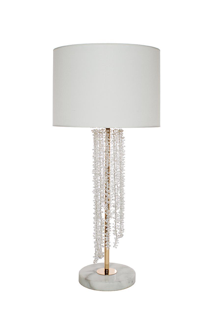 description-full - Создателей дизайнерской настольной лампы вдохновляли загадочные и прекрасные морские обитатели - медузы. Длинные ассиметричные подвески-"щупальца", созданные из сотен прозрачных кристаллов, спускаются каскадом из центра изящного абажура молочно-белого цвета. Золотистое основание закреплено на устойчивой подставке из белого мрамора. Мягкие волны света, падающие от лампы, превращают пространство комнаты в таинственные морские глубины, навевают сны о дальних странствиях и далеких берегах. Лампа станет настоящим подарком романтикам и мечтателям, прекрасно впишется в спальную комнату или изысканную гостиную.