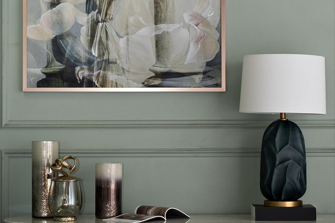 description-full - В дизайнерской настольной лампе необычное керамическое основание цвета темно-зеленого нефрита подчеркнуто металлическими элементами цвета матового золота. Изящный белый абажур классической формы делает конструкцию сбалансированной. Лампа прекрасно впишется в современный интерьер в зеленоватых, серебристо-серых и молочных тонах.