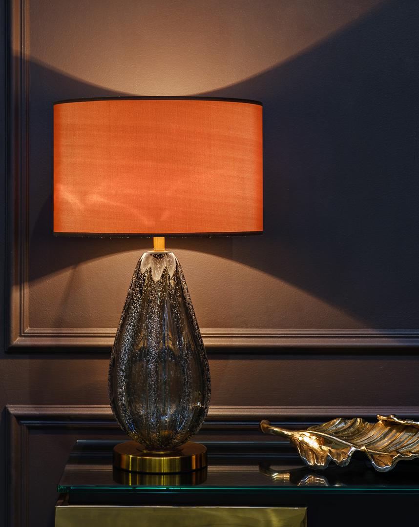description-full - Представленная стеклянная настольная лампа – это гармония традиционной формы и необычного цветового решения. Она отлично справляется с функциями дополнительного источника искусственного света и играет важную роль в декоре жилого пространства. Оригинальная настольная лампа с абажуром эффектно смотрится на прикроватной тумбочке в спальне, она украсит собой гостиную или создаст мягкое освещение в прихожей. Сочетание серо-зеленого стекла и коричневого плафона делает эту модель весьма интересной и необычной. Если вам нужна красивая настольная лампа с индивидуальностью, тогда это отличный вариант.
