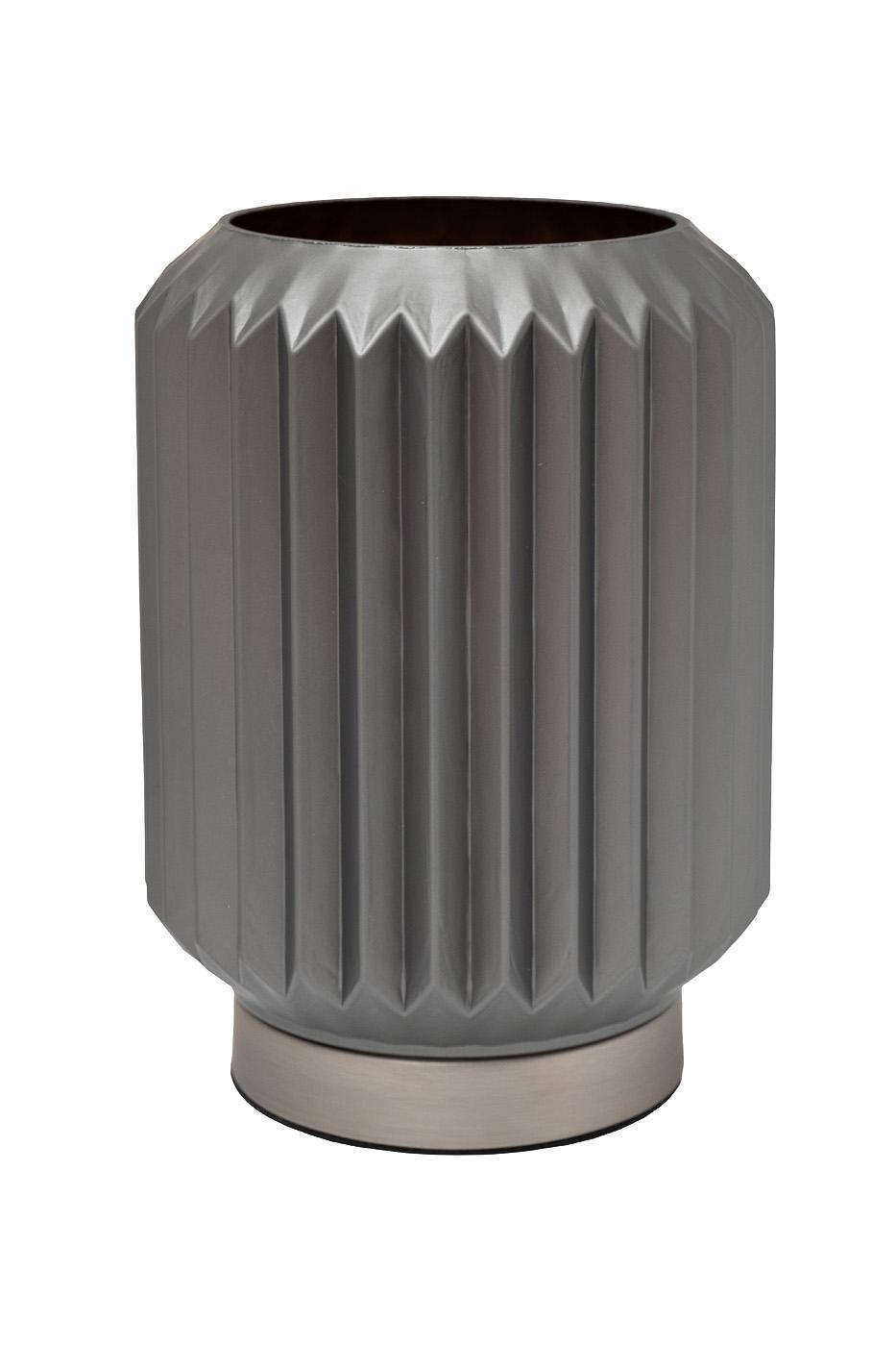 description-full - Настольная лампа из дымчатого стекла с лаконичным дизайном украшает собой пространство и дает мягкий комфортный для глаз свет. Прекрасно впишется в современный интерьер гостиной, спальни, столовой, рабочего кабинета, прихожей. Глубокий серый цвет и оригинальная форма делают этот настольный светильник универсальным решением для современного или классического интерьера. Сочетание металлического основания и матового рифленого стекла стильно выглядит. Форма светильника напоминает декоративную вазу, что делает ее интересной интерьерной деталью. Купить настольную лампу в гостиную, а также декор и аксессуары в аналогичной стилистике можно в интернет-магазине Garda Decor с доставкой.