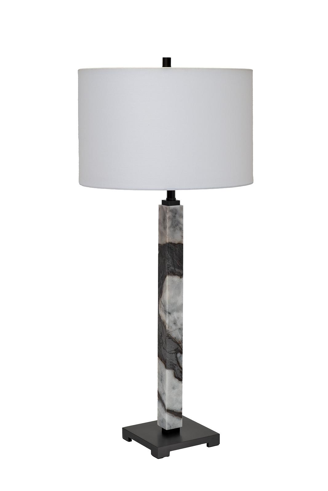 description-full - Эта мраморная настольная лампа — идеальное сочетание брутальной силы природы и утонченной элегантности. Массивное прямоугольное основание выполнено из натурального полированного мрамора с уникальным рисунком прожилок. Благодаря весу и материалу основания, светильник исключительно устойчив, а его внешний вид привносит в интерьер ощущение роскоши и фундаментальности. Верхнюю часть композиции венчает цилиндрический абажур из плотного белого текстиля. Он создан для того, чтобы рассеивать прямой свет, наполняя пространство мягким, теплым и невероятно уютным свечением. Эта дизайнерская лампа идеально подойдет как прикроватный светильник в спальне, элегантное освещение для рабочего стола в кабинете или акцентный элемент в гостиной. Простота форм и благородство материалов гарантируют, что эта лампа станет центральным элементом декора.