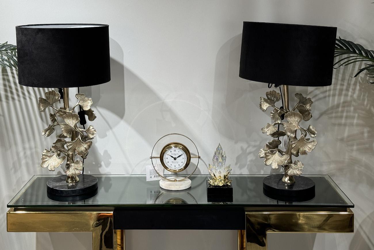description-full - Настольная лампа с абажуром черного цвета – элегантное решение для освещения и декорирования гостиной, спальни, кабинета. Идеальный выбор для тех, кто ценит эксклюзивность вещей и индивидуальность в интерьере. Настольный светильник дарит уютный свет и служит дополнительным источником локального освещения. Главная фишка – необычное основание, выполненное в виде листьев из алюминия. За счет такого интересного дизайна лампа играет не только практическую, но и декоративную роль в современном интерьере. Это полноценный арт-объект, который украшает пространство. Купить настольную лампу можно вместе с другими предметами декора в стилистике современного ар-деко.