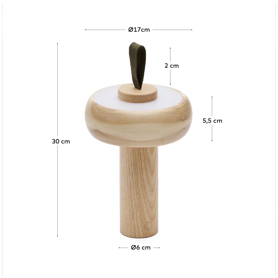 Настольная лампа Luba от фабрики La Forma (ex Julia Grup) – эксклюзивный светильник для разных идей и задач. Настольная лампа Luba – это портативный светильник, который легко и комфортно сопроводит вас в каждый уголок дома. Его минималистский дизайн из массива ясеня идеально подходит для придания стиля, куда бы вы ни пошли. Удобная хлопковая ручка всегда будет кстати для удобства переноса. Пусть будет свет везде – где вам необходимо здесь и сейчас! Лампа полностью изготовлена из массива ясеня в натуральной отделке. Поэтому каждое изделие имеет уникальный тон и фактуру. В верхнюю часть основания вставлена петля из хлопкового шнура зеленого цвета для переноса. Диаметр основания – 6 см. Светодиодный источник света мощностью 2 Вт находится с внутренней стороны абажура в виде кольца. Высота кольца 5,5 см. Спрятанный источник света обеспечивает мягкое распространение света и безопасность. Лампа имеет встроенный аккумулятор, который заряжается через шнур, входящий в комплектацию. Размеры: ширина – 17 см, высота – 30 см, глубина – 17 см. Вес изделия: 1,6 кг. Изделие допускается использовать на открытых пространствах, но под навесом. Перед применением ознакомиться с инструкцией и правилами безопасной эксплуатации.