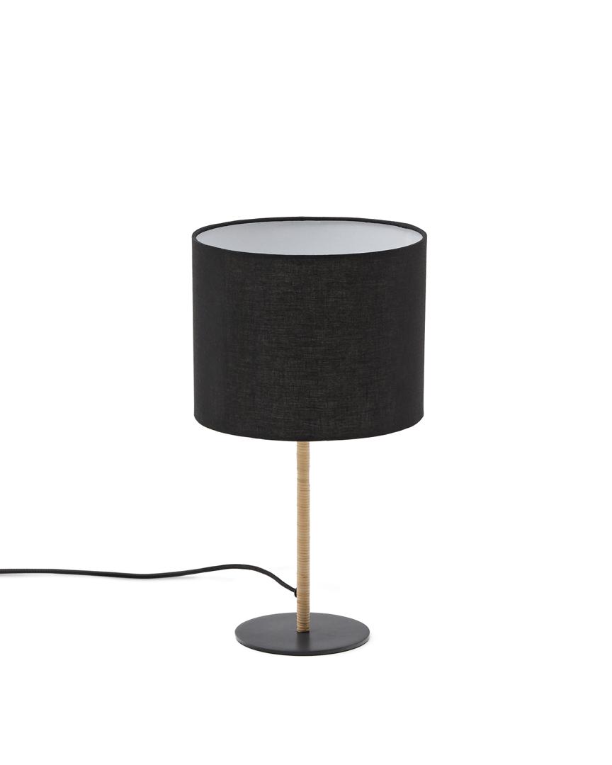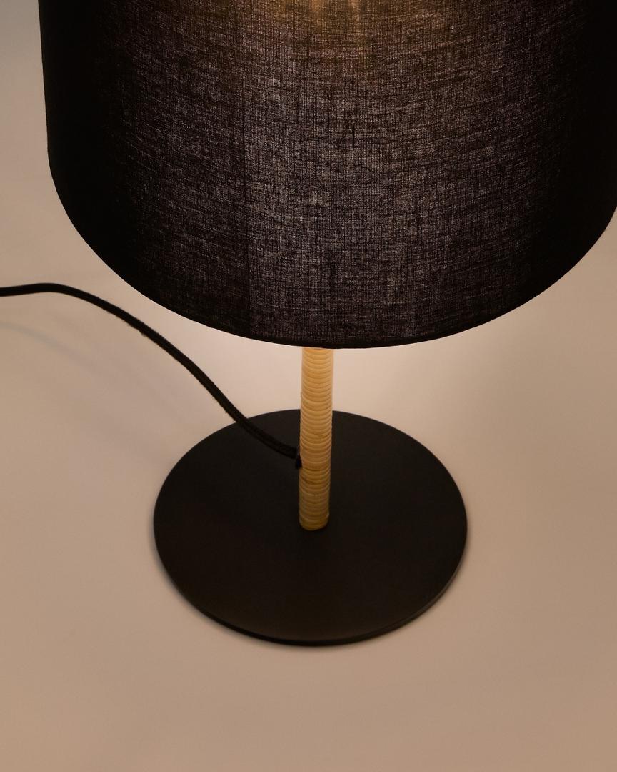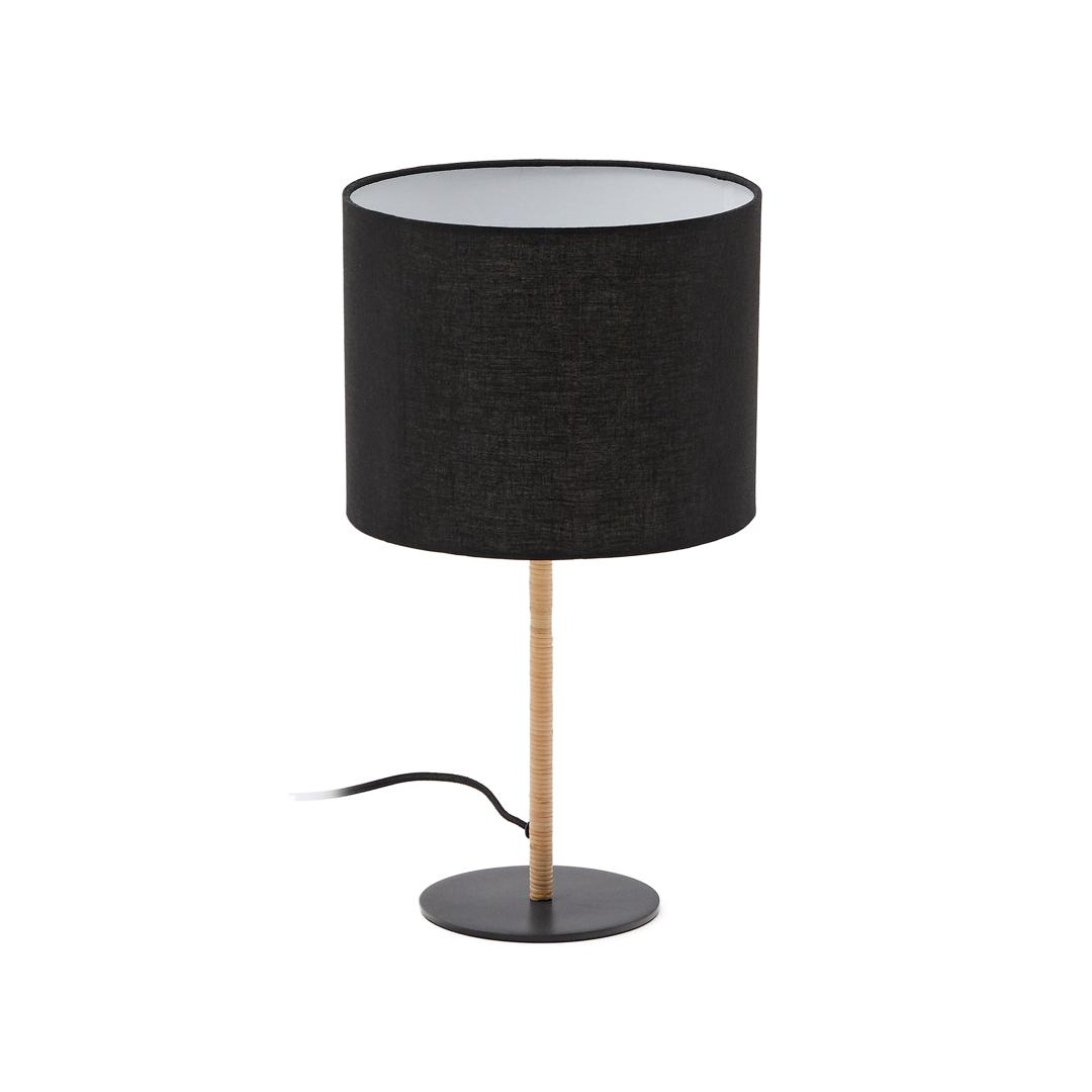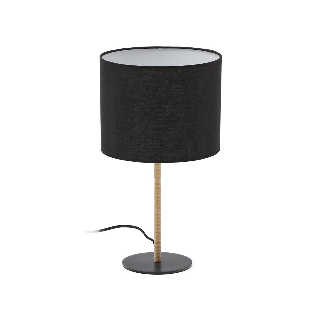 Лампа La Forma (ех Julia Grup) Настольная лампа Pina из металла и ротанга с черным хлопковым абажуром арт. 193296