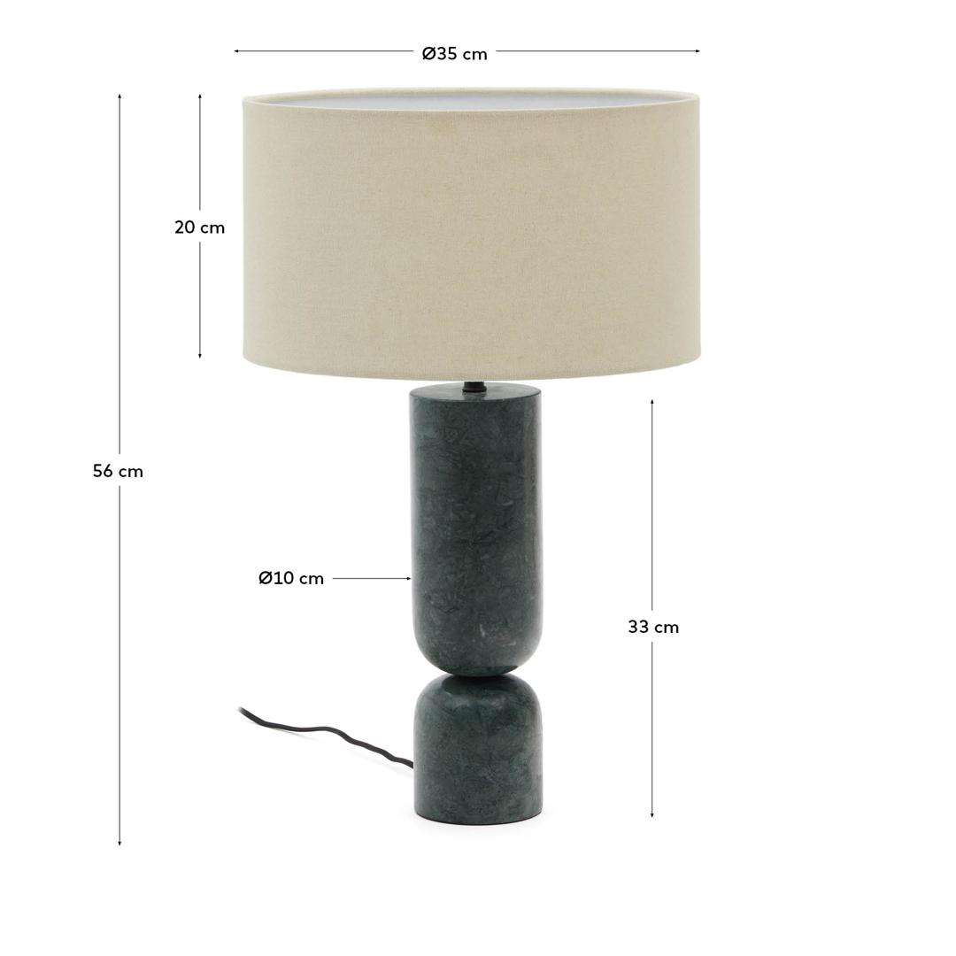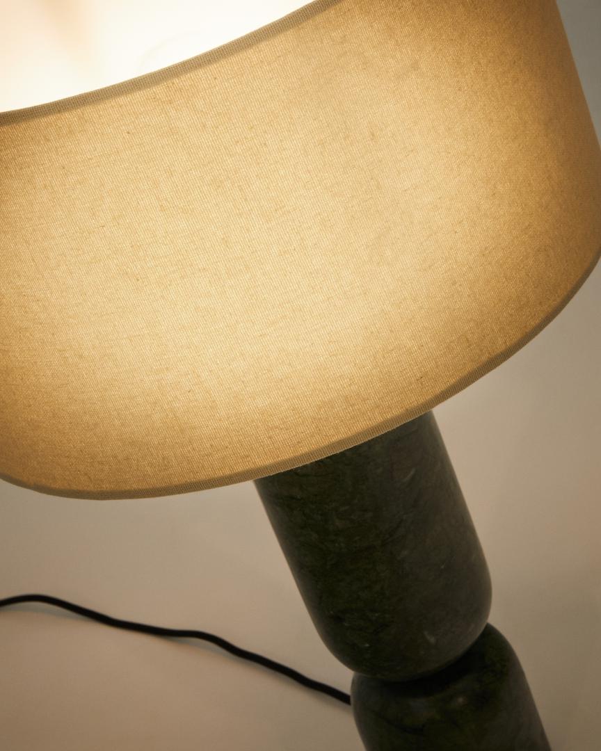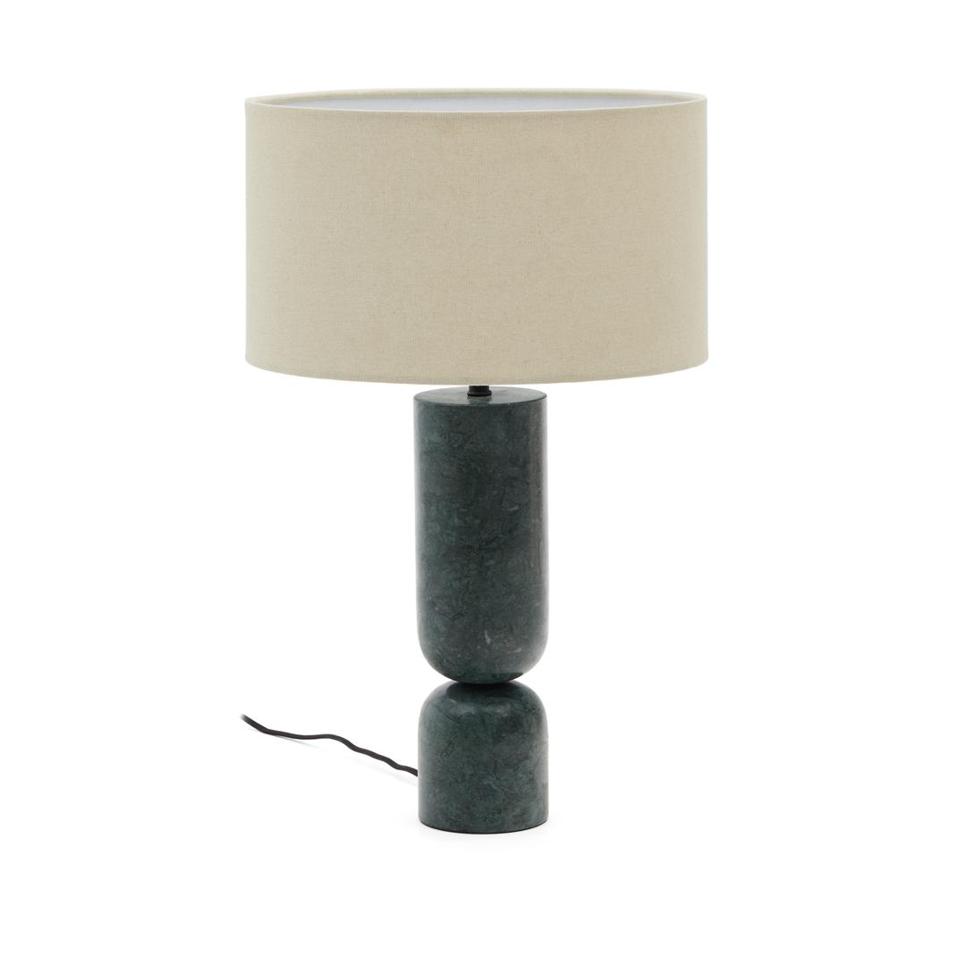 Лампа La Forma (ех Julia Grup) Настольная лампа Vex из зеленого мрамора с серым льняным абажуром арт. 210518