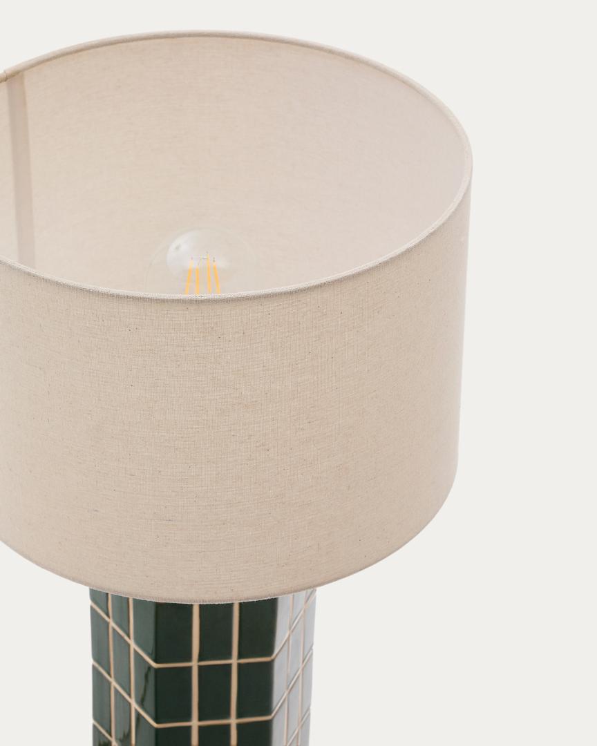 Настольная лампа Rue — это традиционный предмет с современным оттенком, привносящий свежий и изысканный вид в любое пространство. Ее керамическое основание тщательно расписано узором, имитирующим зеленую плитку. Этот процесс глазурования гарантирует уникальность каждой лампы с тонкими вариациями тона и текстуры, которые придают ей эксклюзивный характер. Абажур из ткани цвета экрю создает элегантный контраст с яркостью зеленого основания, обеспечивая теплое и мягкое прикосновение, которое обеспечивает приятное и уютное освещение. Совместимо с лампочками E27 мощностью до 40 Вт. Rue — это не просто лампа, это стильное заявление, которое сочетает в себе функциональность и эстетику в универсальном декоративном элементе.