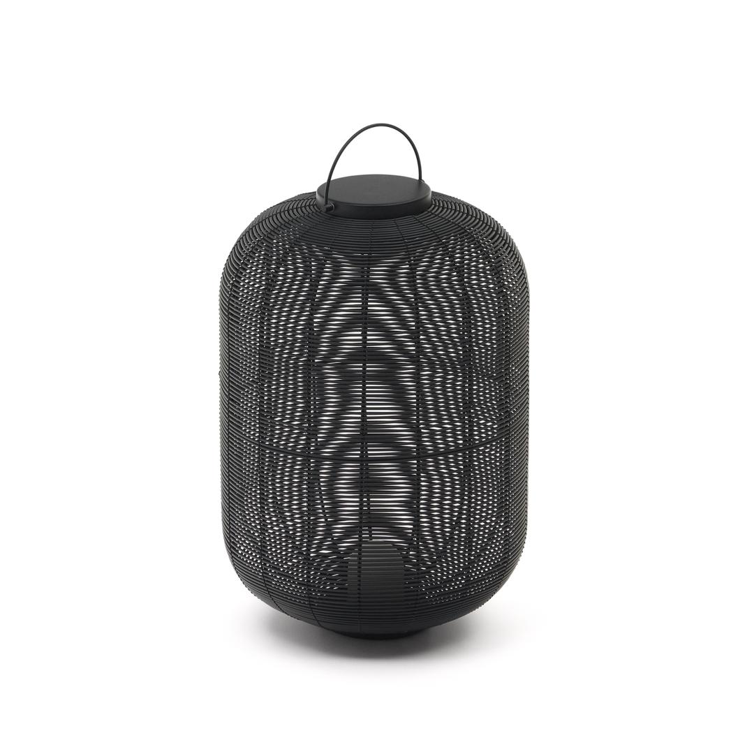 Черный светильник из полиротанга с двумя ручками, поэтому его можно повесить в двух положениях. Теплый светодиодный свет, который заряжается с помощью прилагаемого USB-кабеля. Выберите идеальное освещение благодаря трем уровням интенсивности. Подходит для интерьеров и крытых открытых пространств.