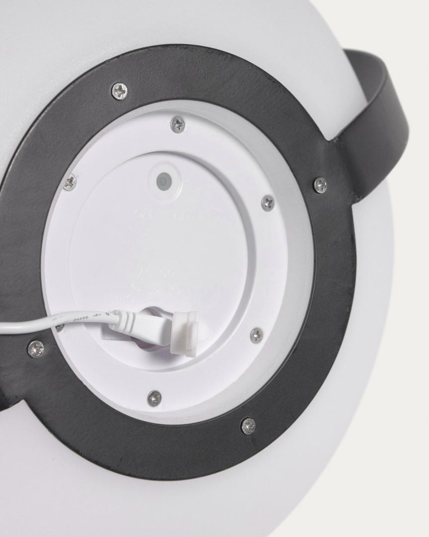 Настольная лампа Lape от фабрики La Forma (ex Julia Grup) – портативный шар для освещения любого пространства. Настольная лампа Lape – универсальный и лаконичный предмет интерьера, как для домашнего, так и для уличного пространства. Круглая форма равномерно распространяет свет, гармонирует с любой геометрией мебели. Вы измените трижды окружающую атмосферу благодаря режимам интенсивности освещения. Будьте индивидуальны и в свете тоже. Настольная лампа выполнена из прочного пластика с белым матовым покрытием. Форму шара окантовывает гибкий металлический обруч с черным порошковым покрытием. Его ширина – 2,5 см. Светильник оснащен светодиодной лампой с холодным цветом освещения. Ее характеристики: мощность – 2 Вт, энергетический класс – A--A++, энергоэффективность – A++. Выключатель димерный, с тремя режимами интенсивности света. В комплектацию включен пластиковый USB-кабель длиной 150 см для зарядки аккумулятора. Размеры лампы: высота – 33 см, ширина – 34 см, глубина – 30 см. Вес – 1,4 кг. Нужна небольшая сборка.