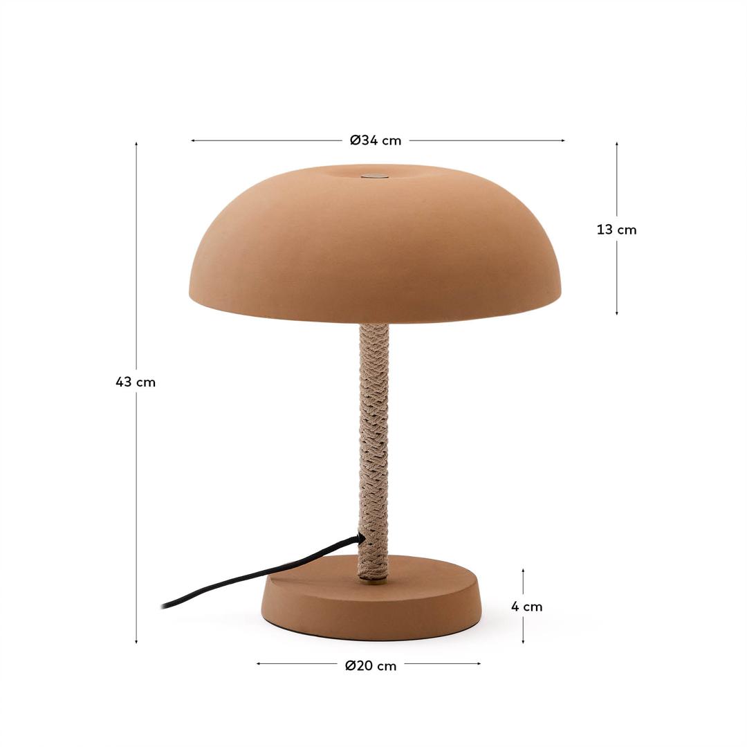 Настольная лампа Arinda — это декоративный предмет, который выделяется своей аутентичностью и самобытным характером. Ее основание и абажур сделаны из терракоты, что придает ей теплый и уникальный вид. Использование этого материала позволяет каждой лампе иметь небольшие вариации тона и текстуры, что делает ее эксклюзивным предметом со своей индивидуальностью. Дизайн Arinda сбалансирован и элегантен, с закругленным абажуром, который мягко распределяет свет, идеально подходит для создания уютной атмосферы. Центральный стержень, покрытый веревочным шнуром, создает интересную визуальную деталь и текстурный контраст, добавляя отличительный элемент к дизайну. Совместим с лампочкой E27 до 40 Вт (продается отдельно).
