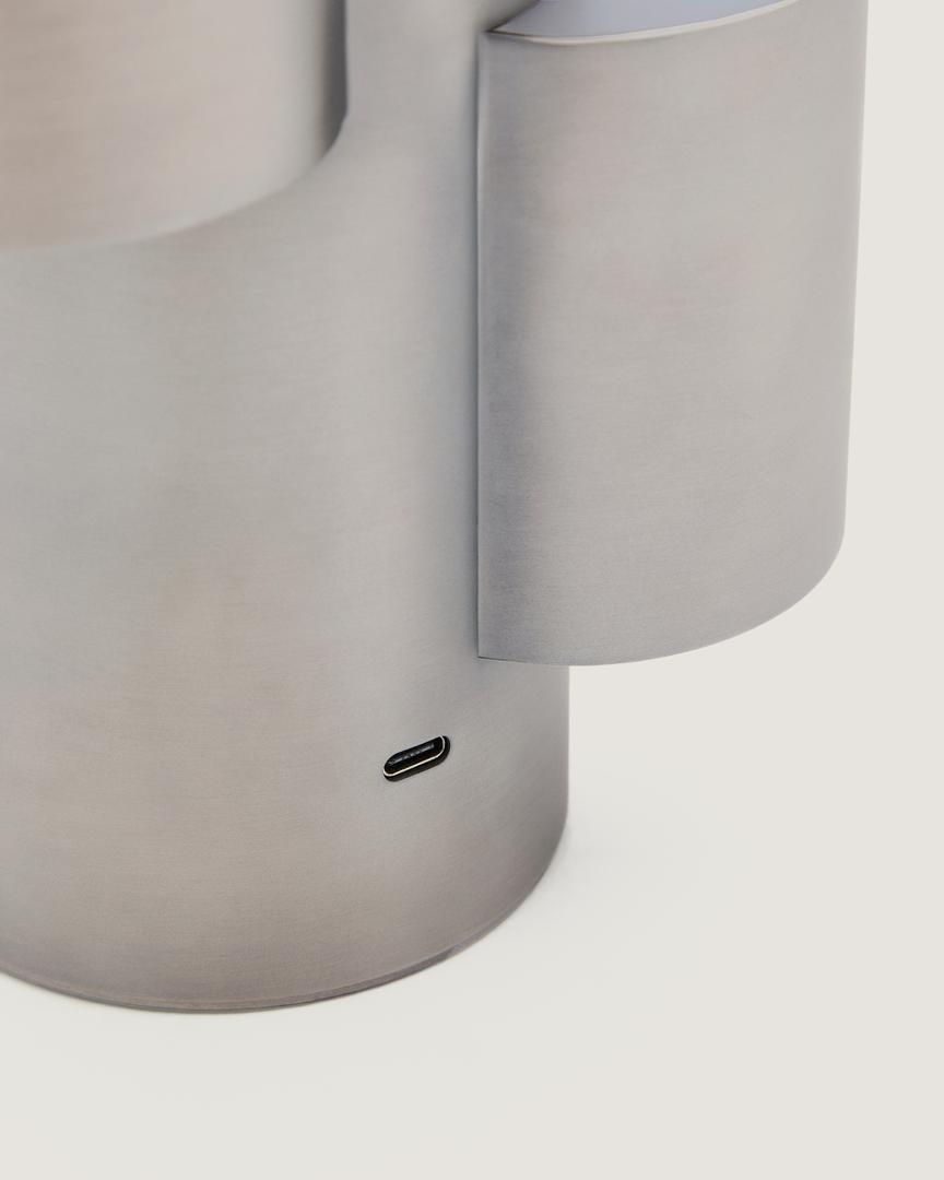 Переносная светодиодная настольная лампа выделяется своим скульптурным и современным дизайном, характеризующимся геометрическими и трубчатыми линиями. Матовая отделка металлической поверхности подчеркивает элегантность изделия и создает мягкие световые блики, особенно при естественном освещении. Благодаря светодиодной технологии мощностью 2,7 Вт и цветовой температуре 3000 К эта лампа обеспечивает теплое и уютное освещение, идеально подходящее для создания расслабляющей атмосферы как в жилых, так и в рабочих помещениях.