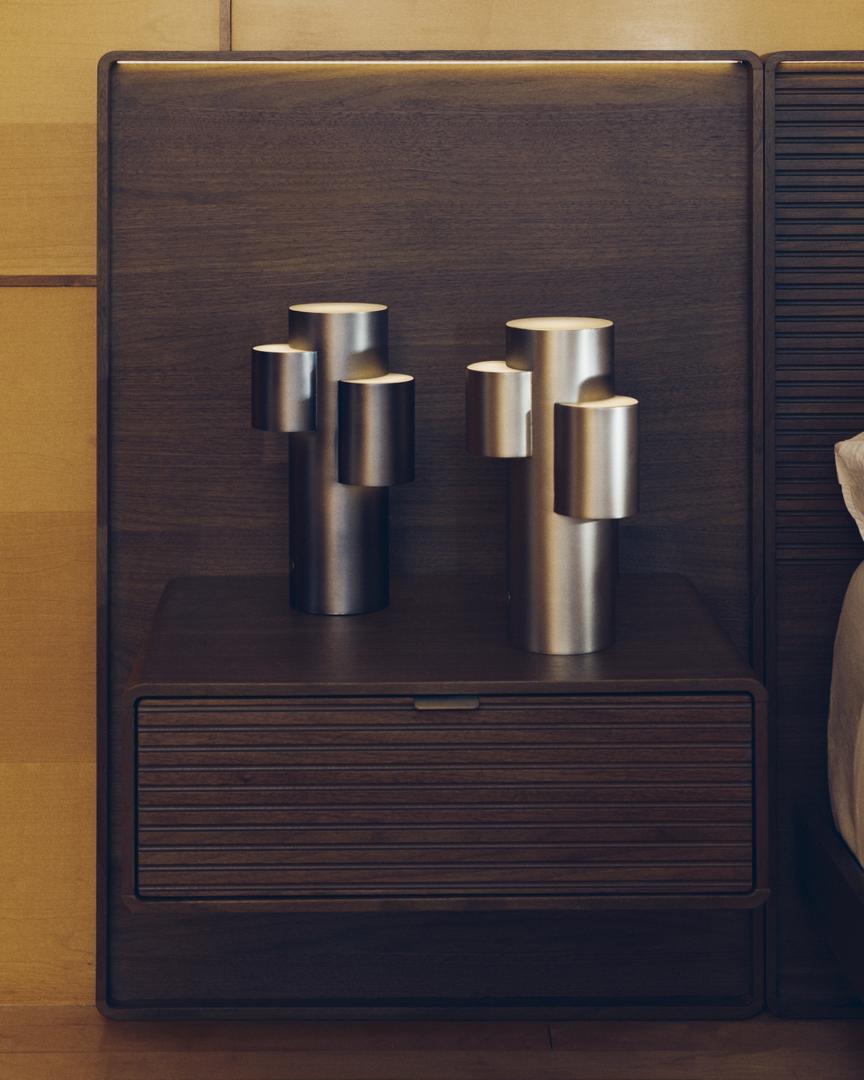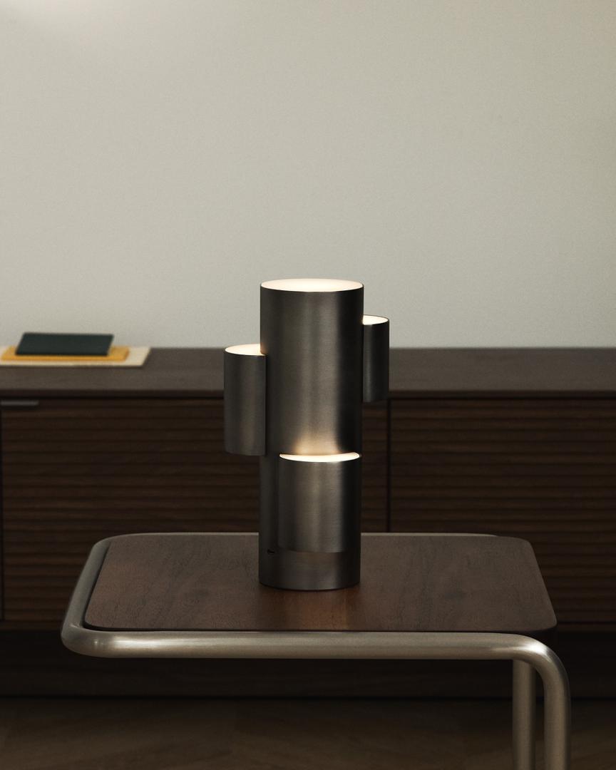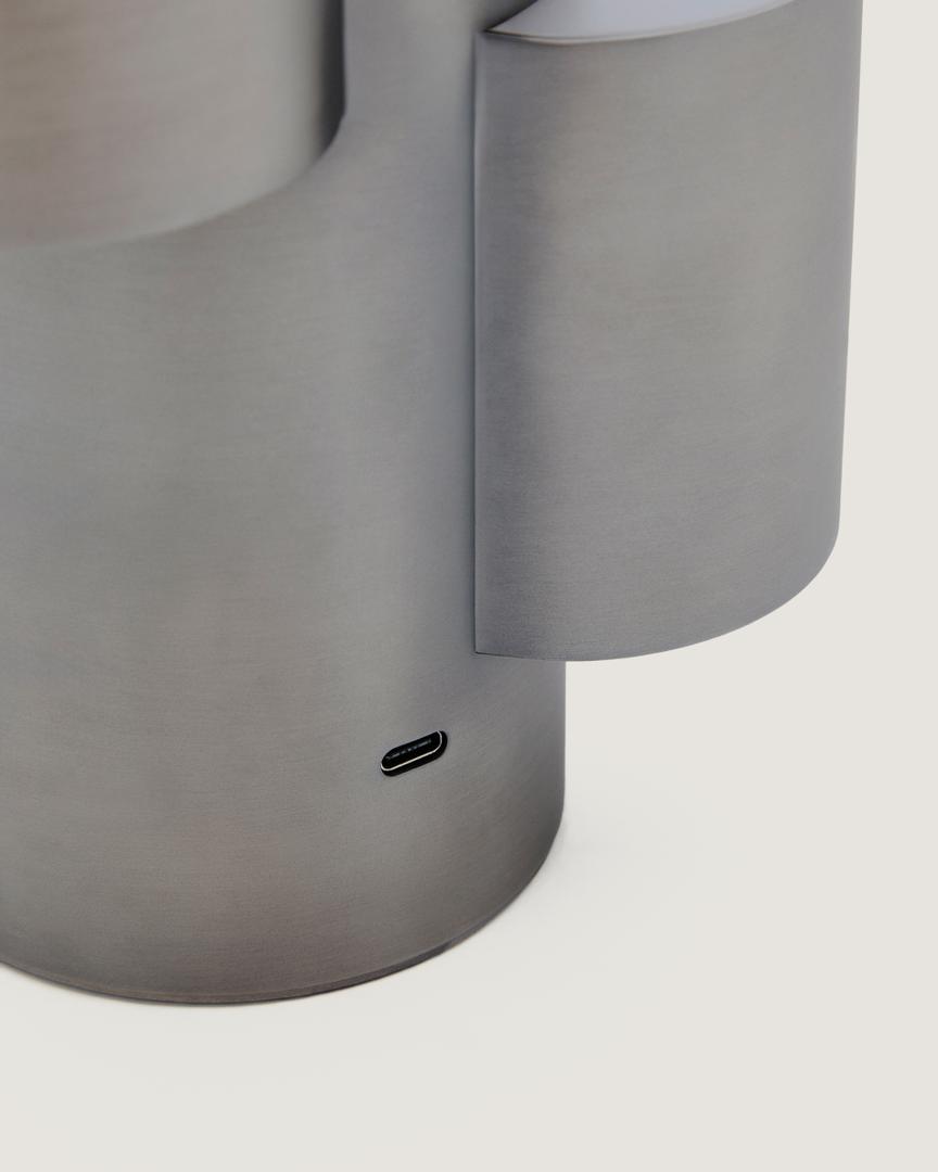 Переносная светодиодная настольная лампа выделяется своим скульптурным и современным дизайном, характеризующимся геометрическими и трубчатыми линиями. Матовая отделка металлической поверхности подчеркивает элегантность изделия и создает мягкие световые блики, особенно при естественном освещении. Благодаря светодиодной технологии мощностью 2,7 Вт и цветовой температуре 3000 К эта лампа обеспечивает теплое и уютное освещение, идеально подходящее для создания расслабляющей атмосферы как в жилых, так и в рабочих помещениях.
