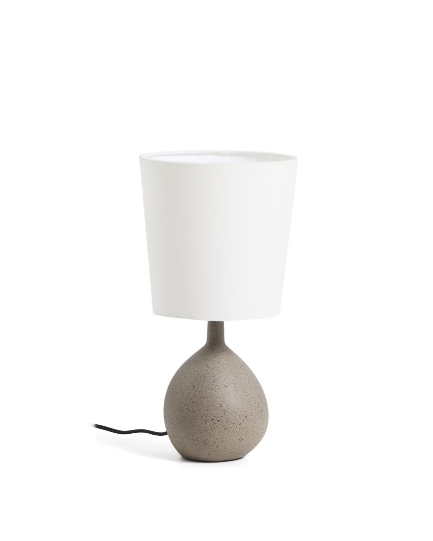 Настольная лампа с основанием, фактурным под камень. Абажур из хлопка конической формы цвета слоновой кости. Совместима с лампочками E27 мощностью до 40 Вт, продаются отдельно.