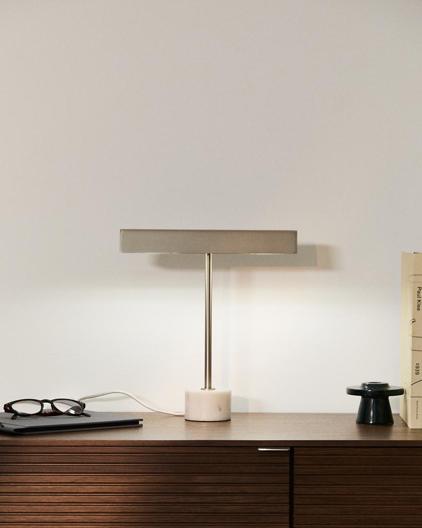 Настольная лампа из матового металла. Основание из мрамора, благодаря чему каждая лампа будет уникальной, с уникальными оттенками и текстурами. Совместима с лампами G9. Продаётся отдельно. Провод с мягкой и гибкой внешней оболочкой предотвращает спутывание и облегчает использование.