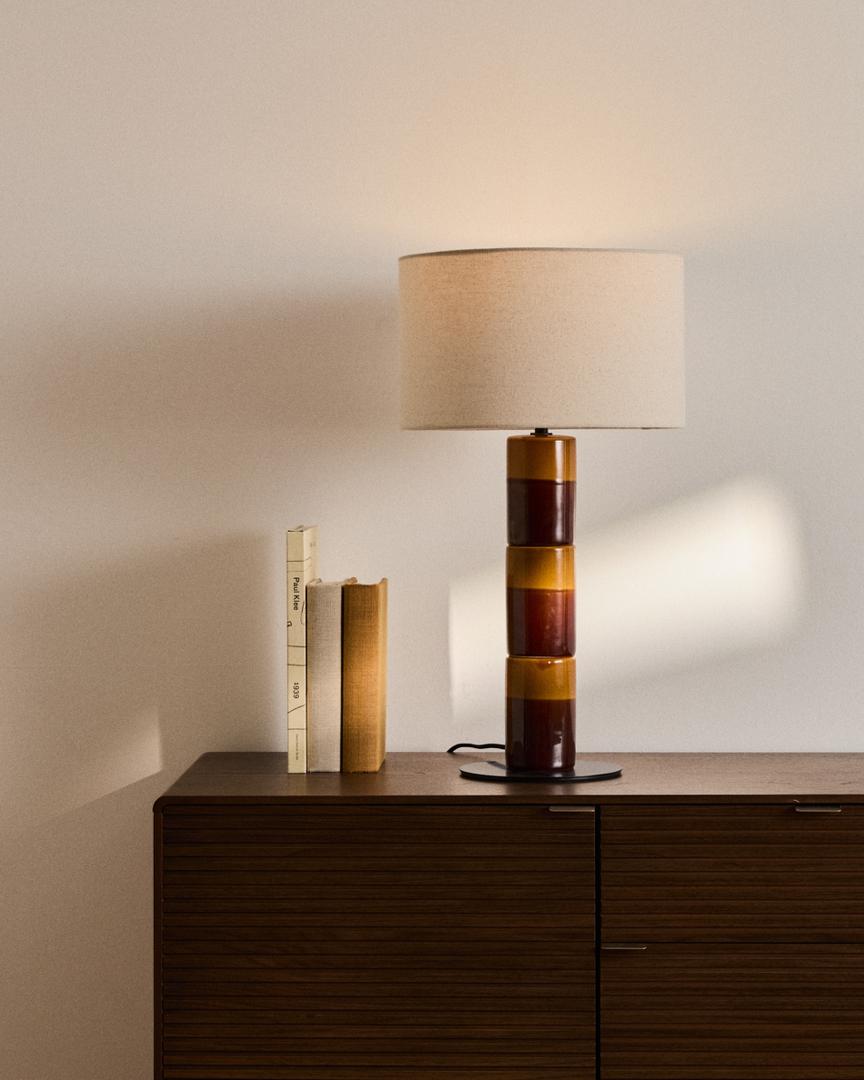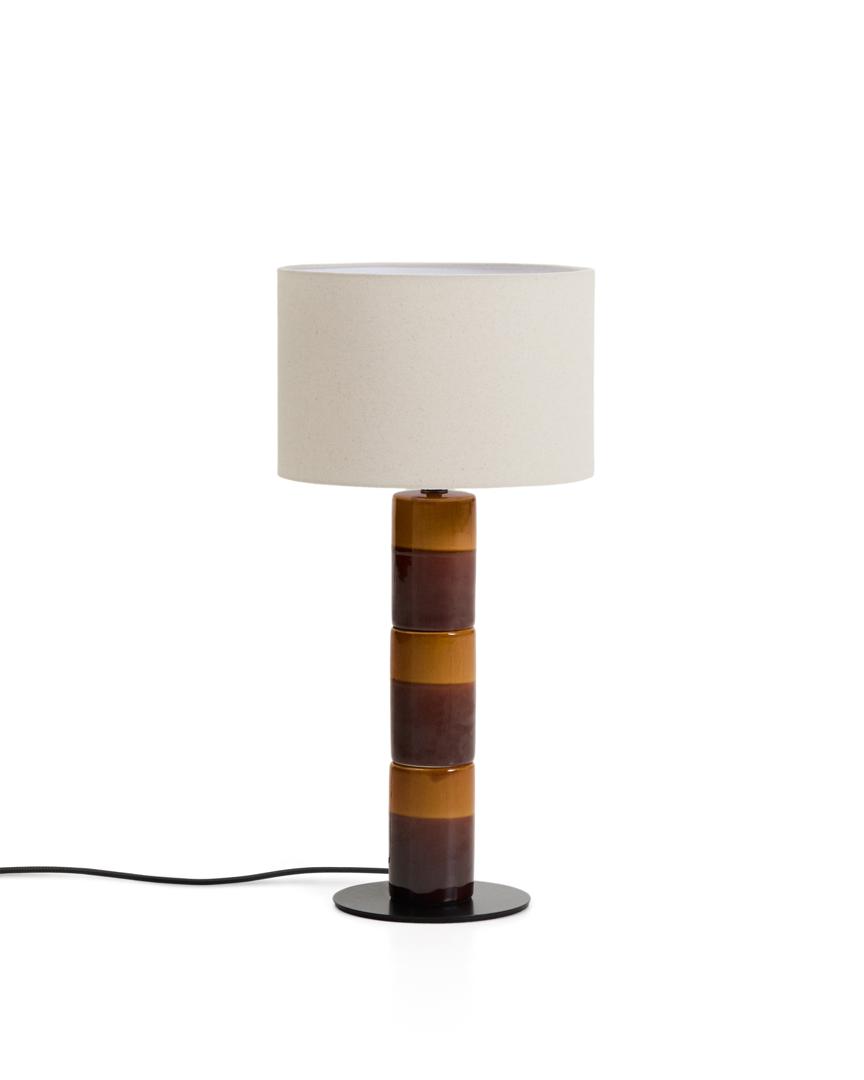 Эта коллекция выделяется своим глазурованным керамическим основанием, выполненным из чередующихся полос теплых тонов, которое привносит динамику и индивидуальность в любую комнату. Хлопковый абажур рассеивает свет и создает мягкую, обволакивающую атмосферу, идеально подходящую для гостиных, спален или уголков для чтения. Тонкий вертикальный дизайн подчеркивает презентабельность изделия, а эмалированная отделка основания добавляет визуальной привлекательности. Кабель, обтянутый сверхмягкой тканью, добавляет нотку изысканности и приятен на ощупь.