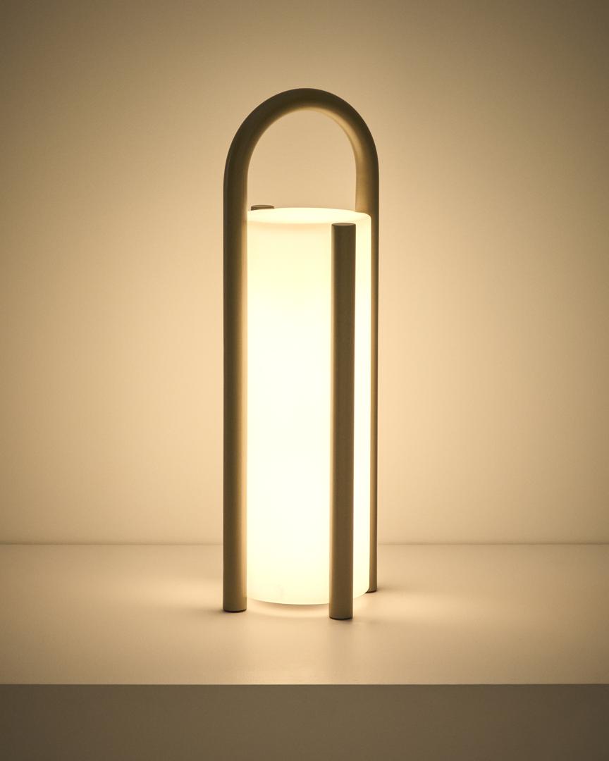 Лампа La Forma (ех Julia Grup) Большая портативная настольная лампа Leros из полиэтилена и стали бежевого цвета арт. 482854