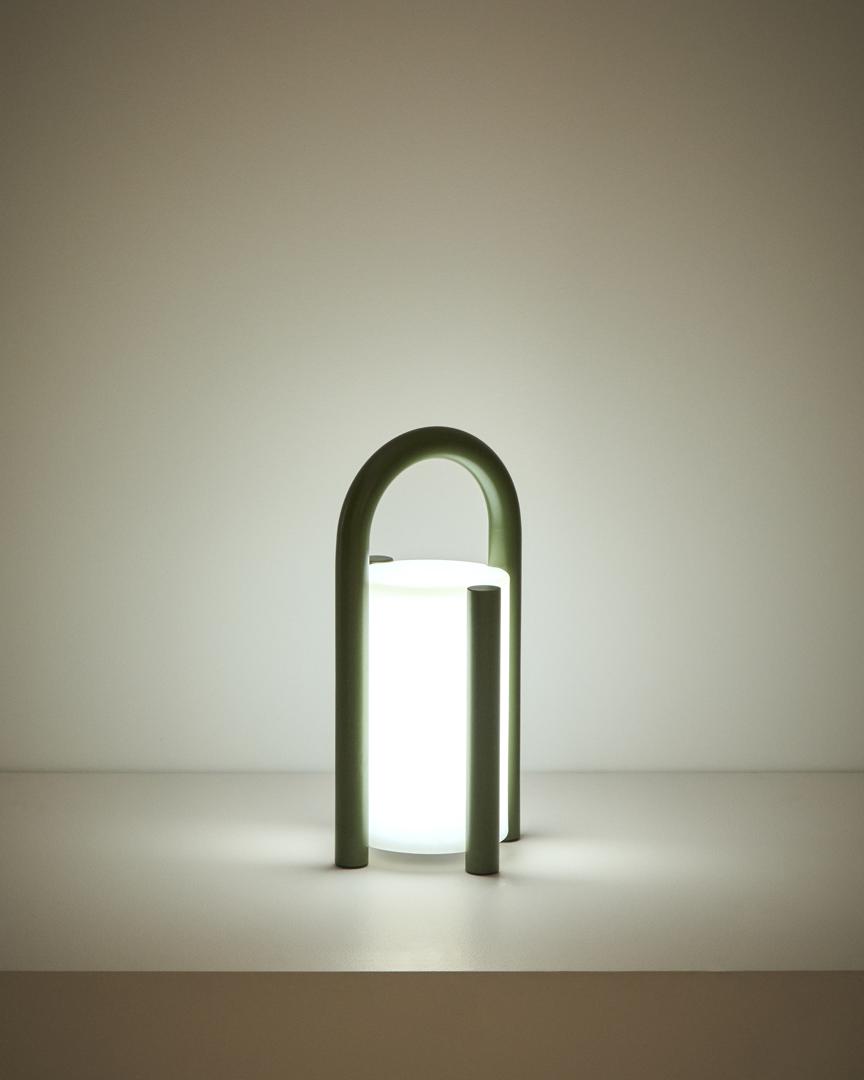 Лампа La Forma (ех Julia Grup) Портативная настольная лампа Leros из полиэтилена и стали зеленого цвета арт. 482852