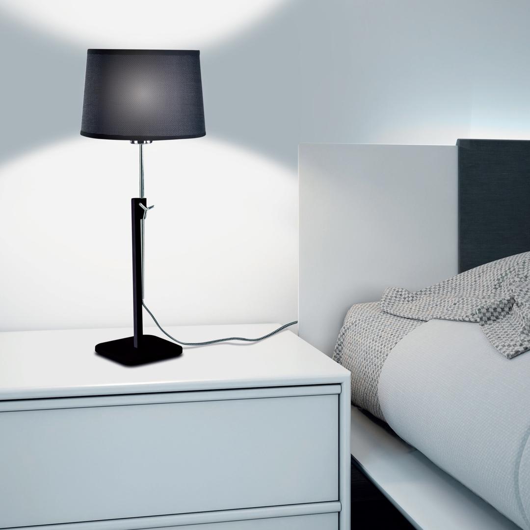 Изящная настольная лампа Habana с пирамидальными плафонами отлично подойдет для установки в спальне или гостиной, оформленной в современном стиле. Светильник выполнен из металла и ткани. Доступен в белом, черном и хромовом цвете.