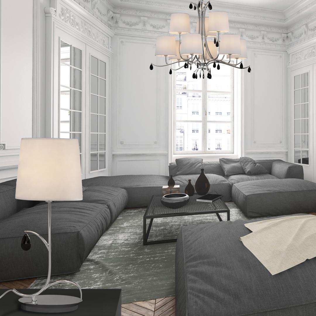 Светильник Andrea, выполненный из металла в современном прочтении классики. Тканевые плафоны выгодно оттеняются конструкцией из античной латуни, украшенной прозрачными хрустальными каплями, так же как вариант в цвете хром с черным хрусталем.