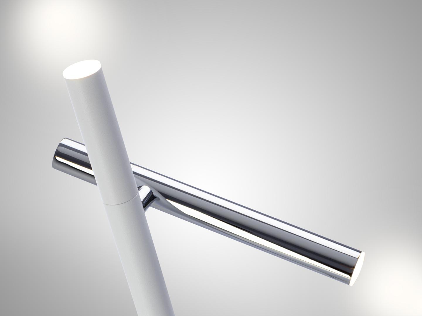 Настольная лампа с 2 лампами LED, из металла с покрытием "хром" и матовым белым покрытием, опаловый акриловый рассеиватель, 10W LED, 900 Lm, 3000 K.