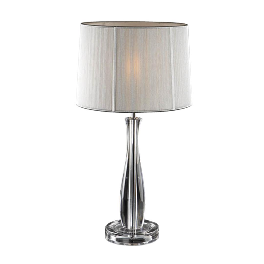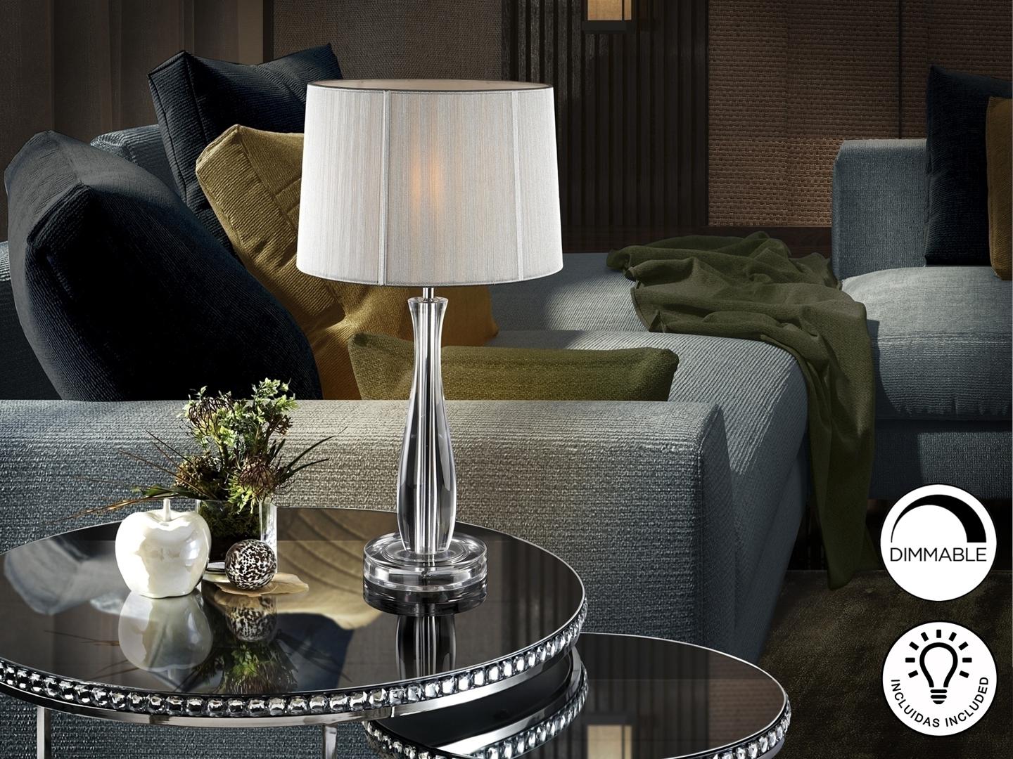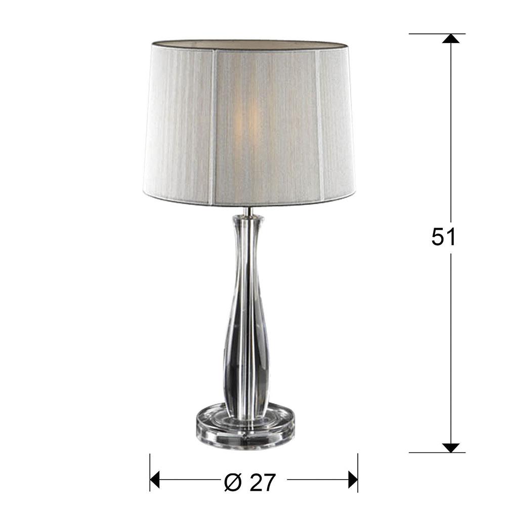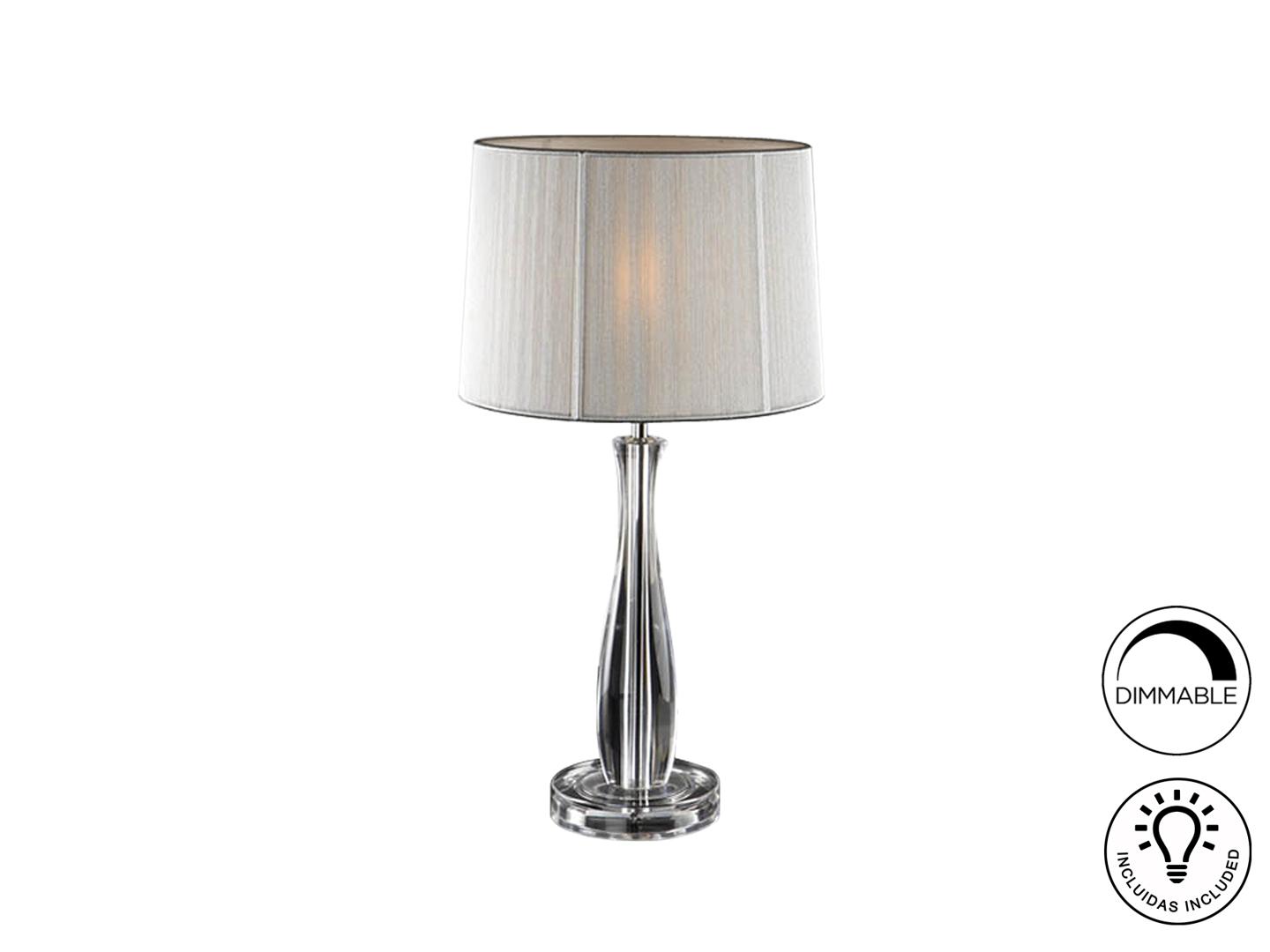 Настольная лампа из метакрилата, с 1 лампой, абажур из серебристо-белой тесьмы. Включает 1 светодиод E27 7 Вт. Диммируеый.