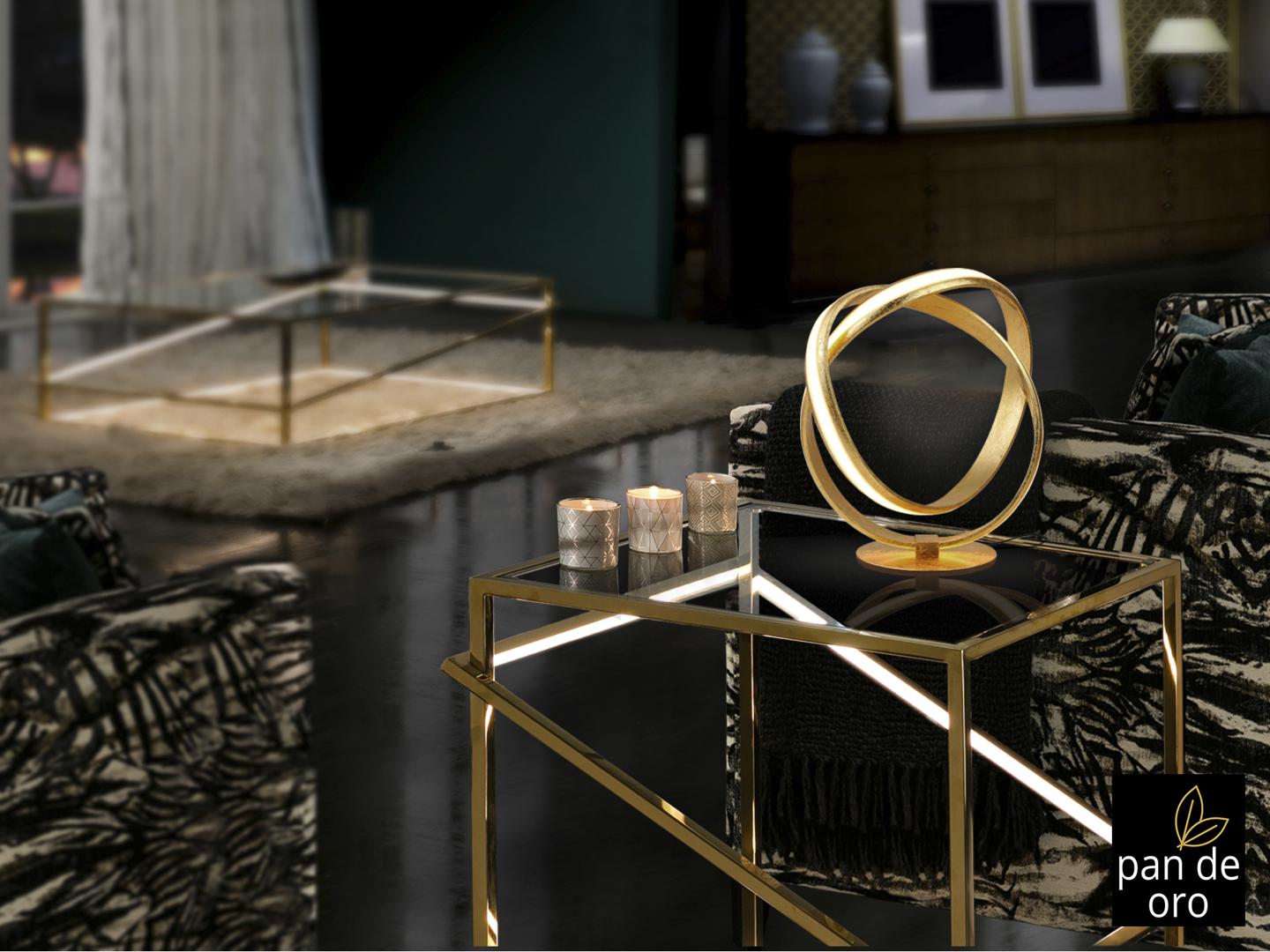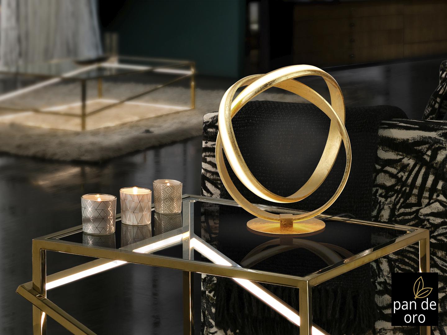 Настольная лампа из стали и алюминия с покрытием из золотой фольги. Акриловый рассеиватель опалового цвета. 17W LED, 900 Lm, 3000 K.