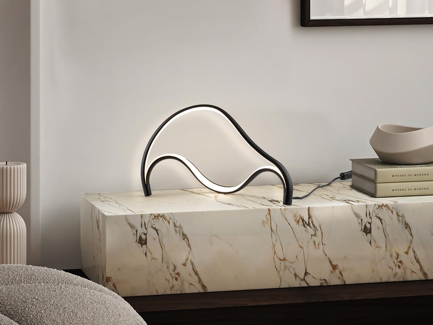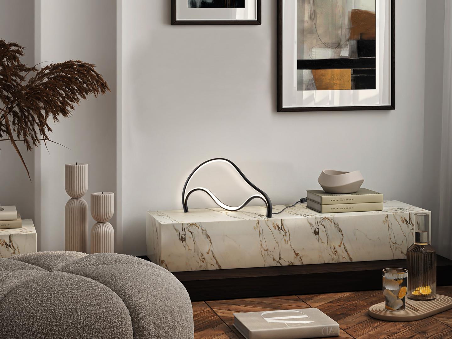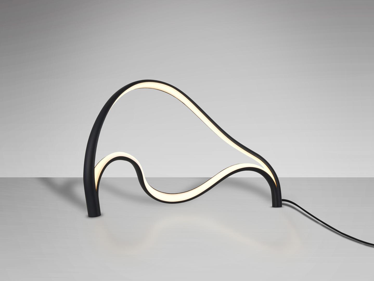 Настольная лампа из металла и алюминия с матово-черной пескоструйной обработкой. Рассеиватель из опалового силикона. Светодиоды 18 Вт. 823 лм. 3000 К