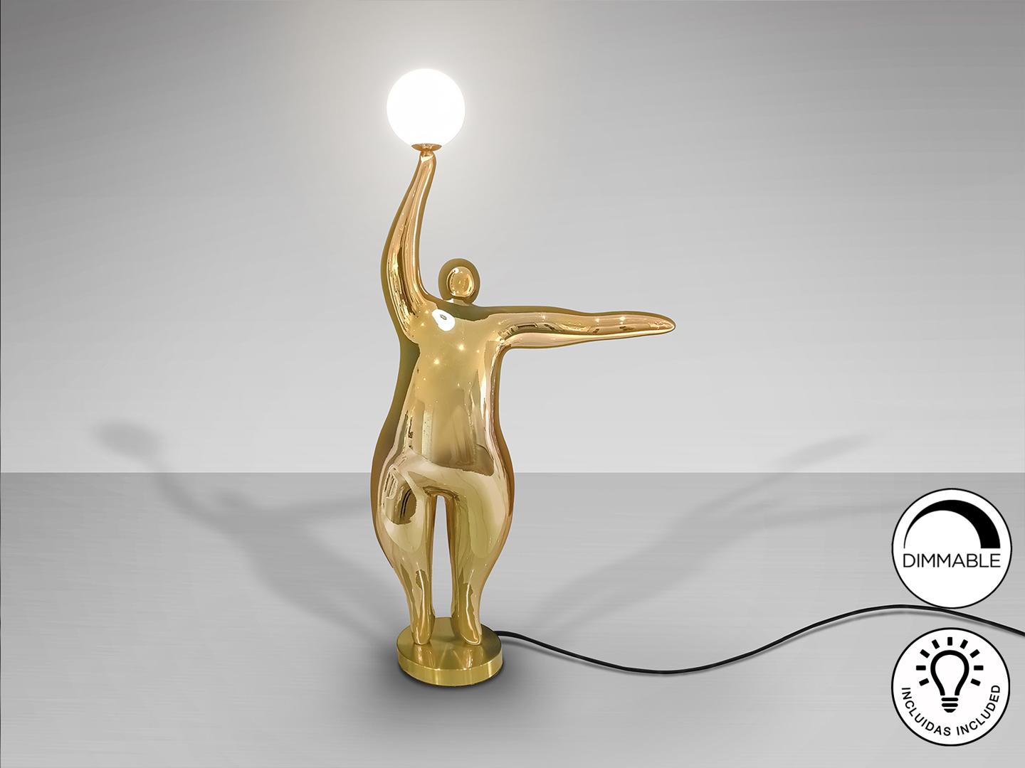 Фигурка из стекловолокна и полиэфирной смолы, отделка блестящая позолоченная, сферические акриловые плафоны с матовой опаловой отделкой. ·В комплект поставки входит 1 светодиод G9 6 Вт.