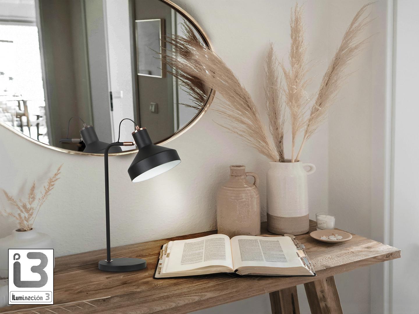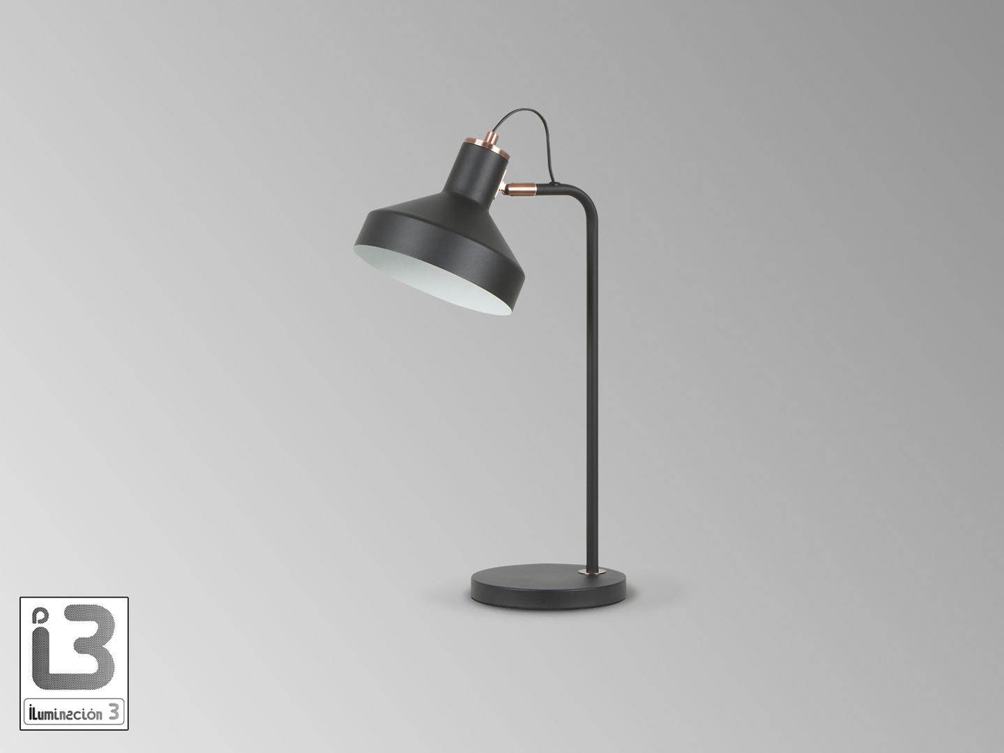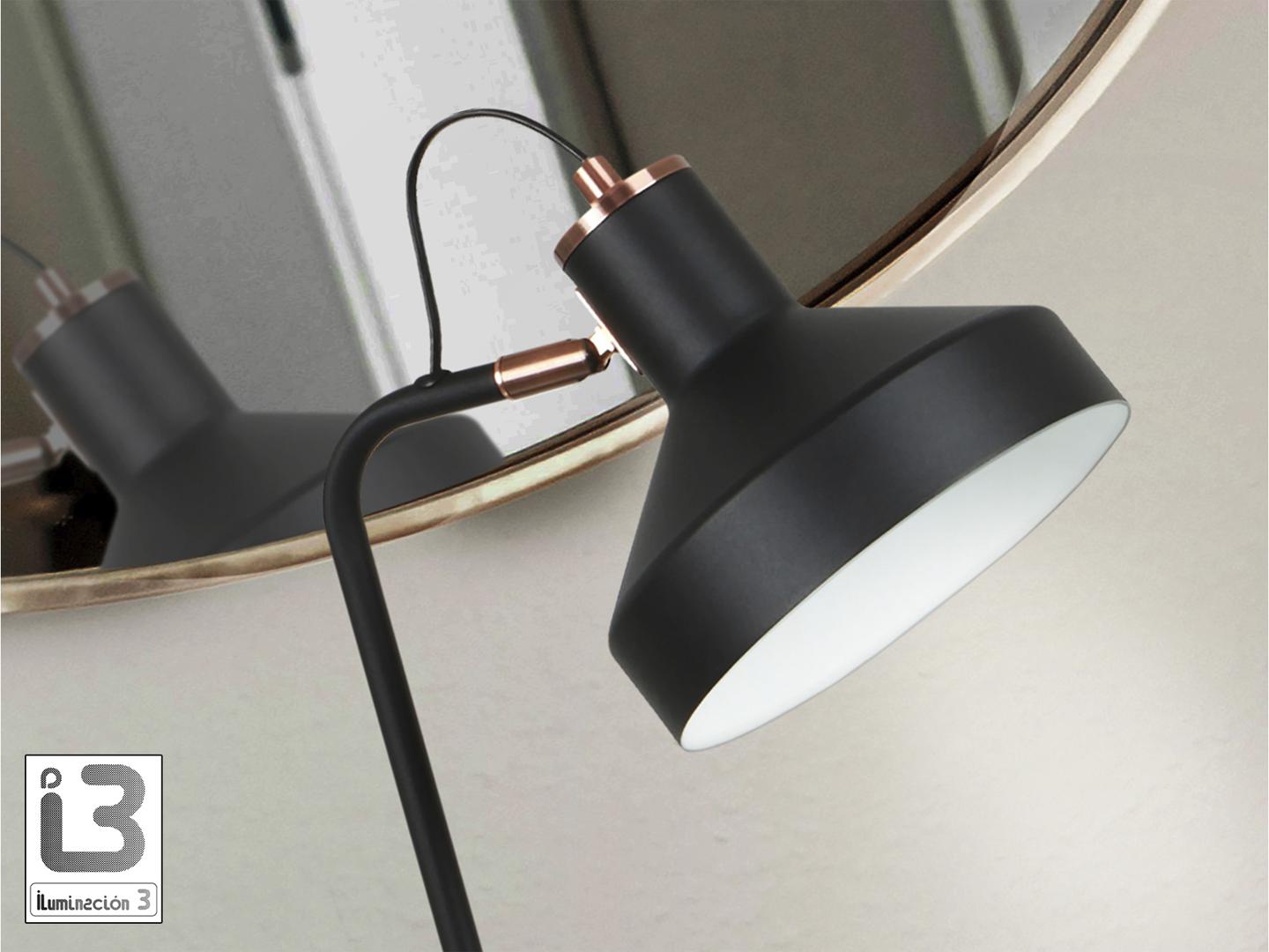 Настольная лампа из металла, отделанного в матово-черный цвет, детали из сатинированной меди. Абажур с регулируемым наклоном. 1 E27 Для рынков с напряжением 110 В изделие будет поставляться без лампочек.