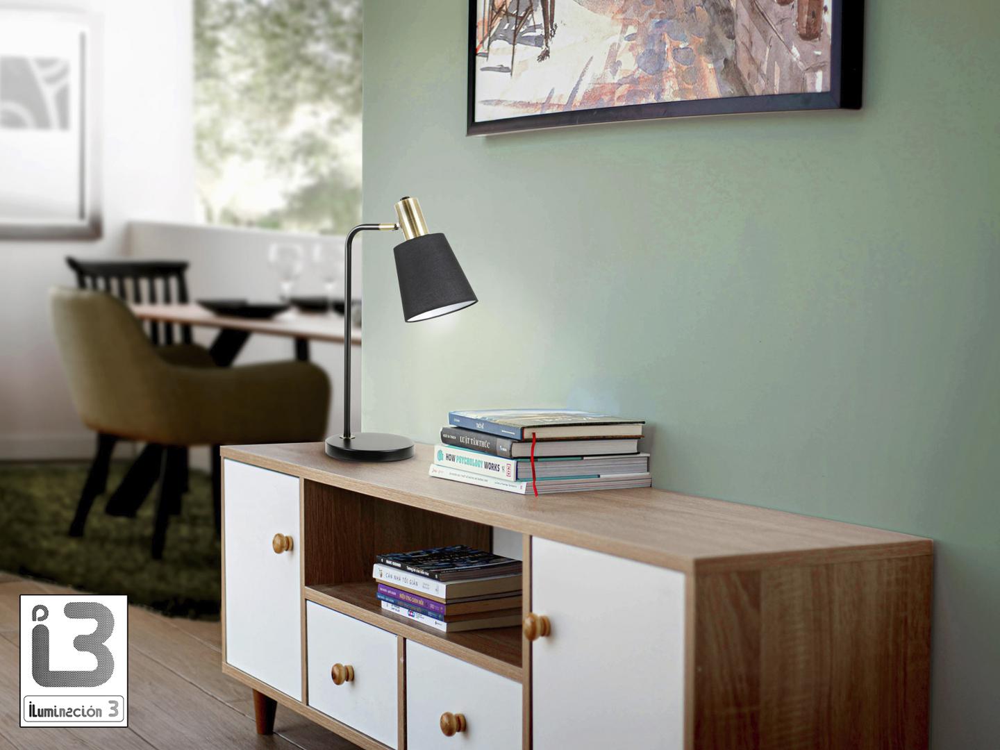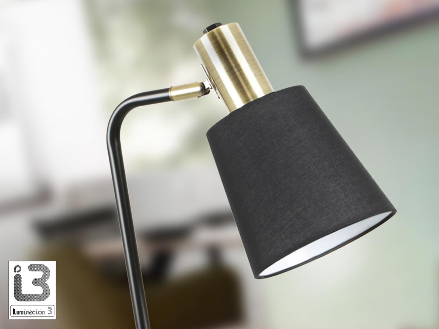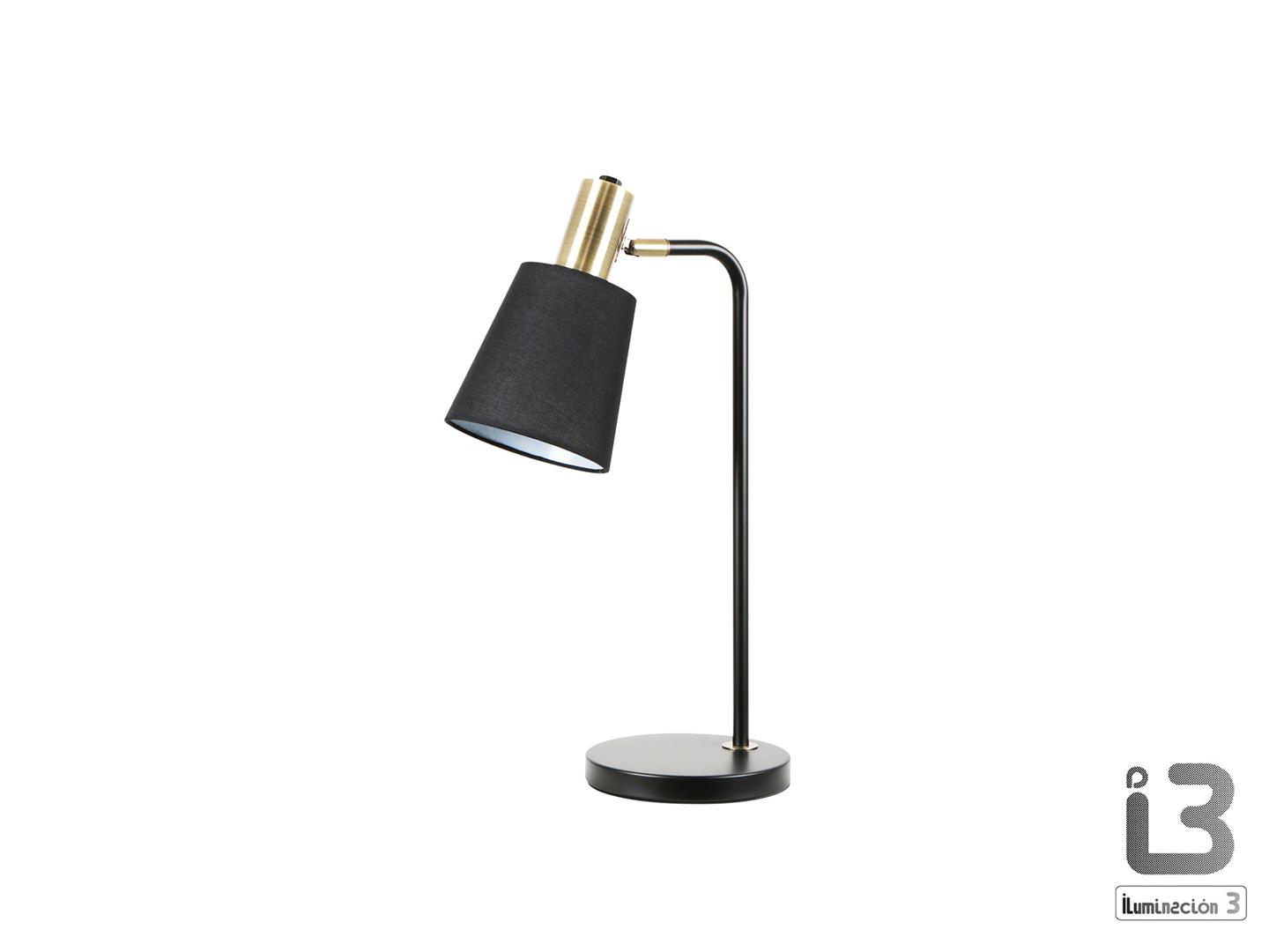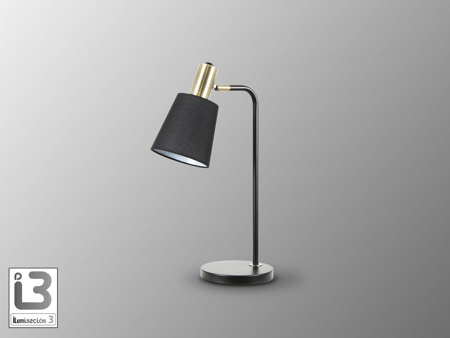 Настольная лампа из металла с отделкой матово-черного цвета и деталями из сатинированной латуни. Черный текстильный абажур с регулируемым наклоном. 1 E27