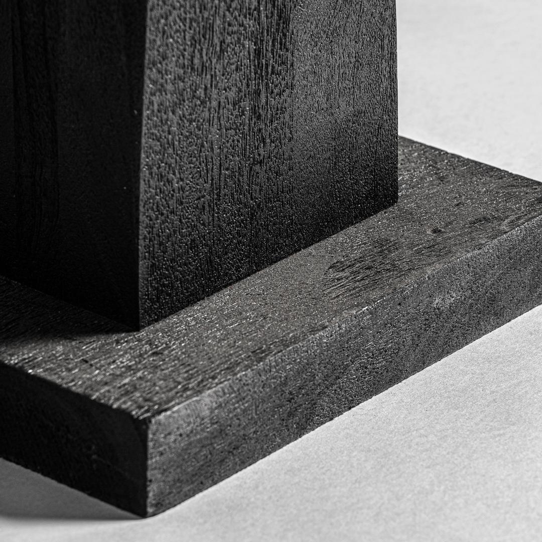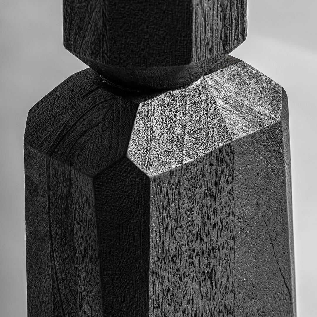 Настольная лампа Cogne в современном стиле, изготовленная из черного мангового дерева в сочетании с кремовым джутом.