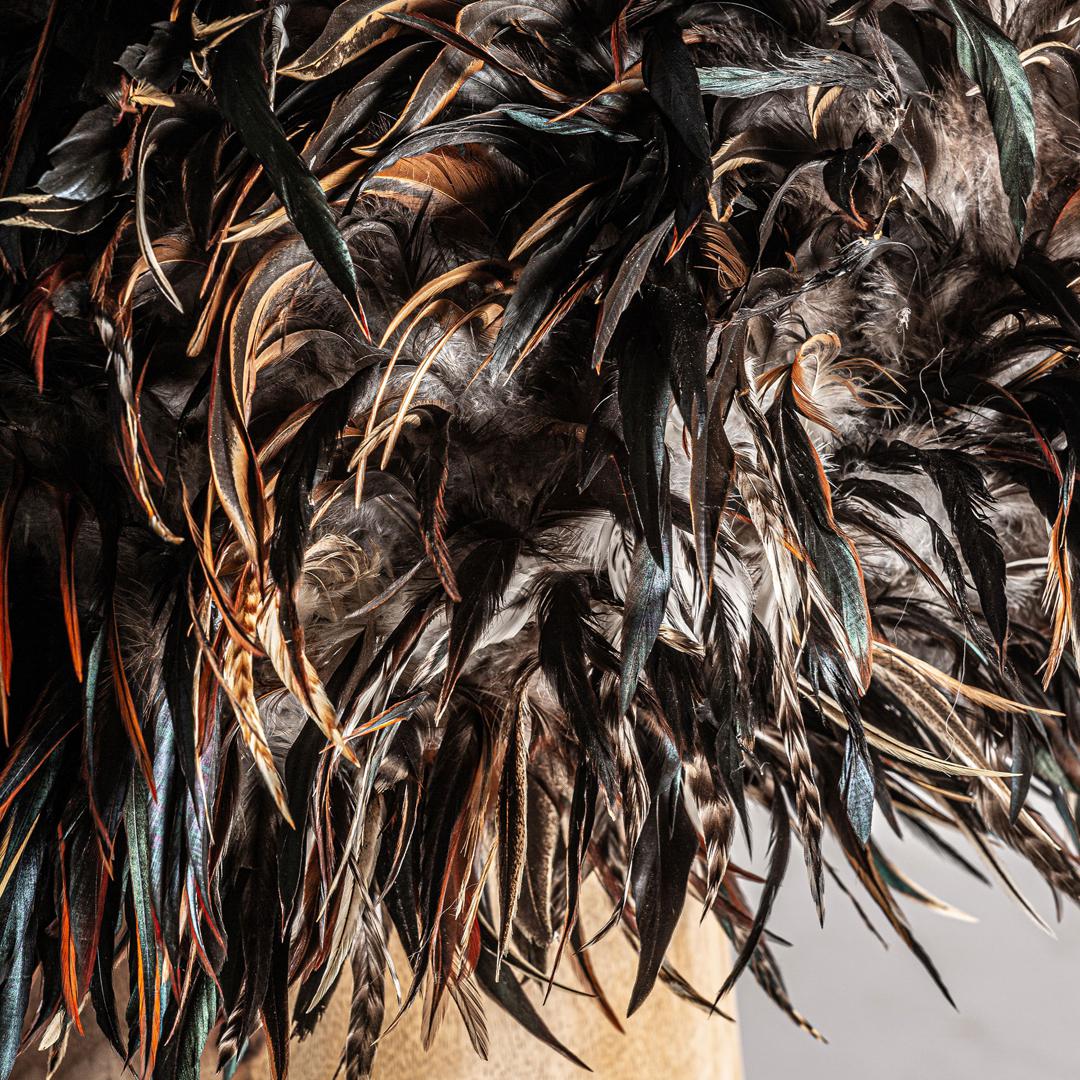 Настольная лампа Gedas в этническом стиле состаренного коричневого цвета. Изготовлен из тикового дерева в сочетании с перьями. . Подъемный продукт.